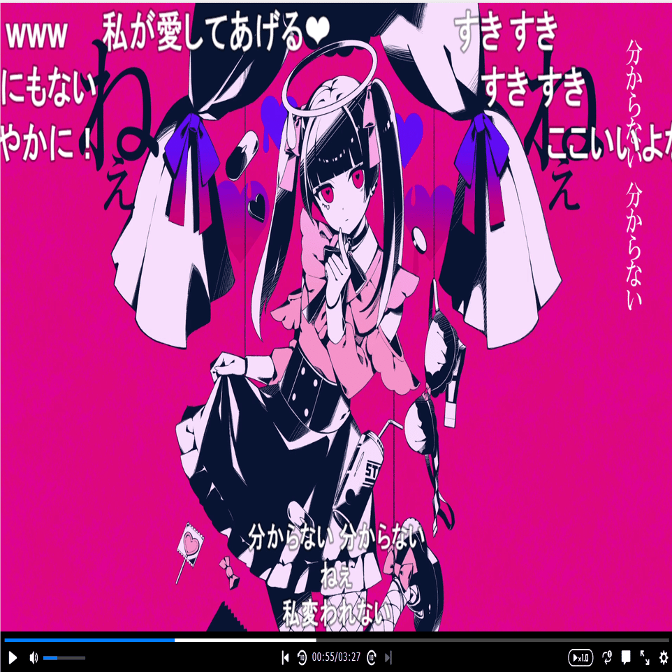 今時いろんな配信サイトでコメントを動画内に映す試みなんて沢山行われているわけでもっと他の目立ち過ぎない方法を模索できないものでしょうかね。画面の外に追加で枠を設けてそこにコメント流すスペースを作ったり、画面内の端の方でコメントだけポップアップさせるとか配信の常套手段ですけど。