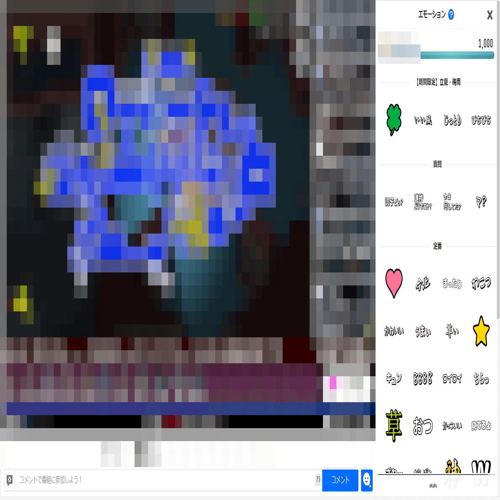 ニコ生に実装されているエモーション、スクショの右側に映ってるやつです。