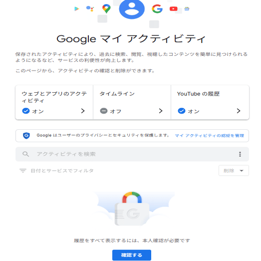 ウェブとアプリのアクティビティからデータを見れると思っていたけど、そこへ入ると、アクティビィティ管理に行く。
