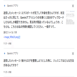 ✦Geminiアプリをクリックすると、以下のようにログを見ることができる