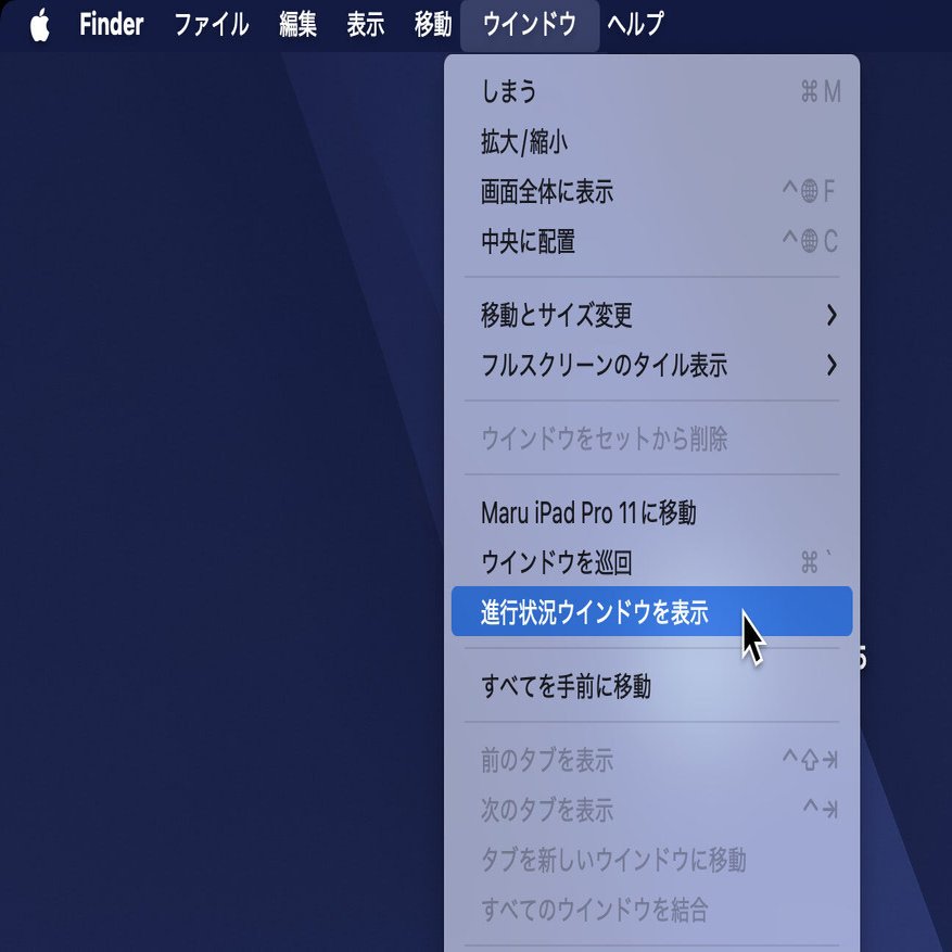 Finderの進行状況ウインドウを閉じたらどうなるのか