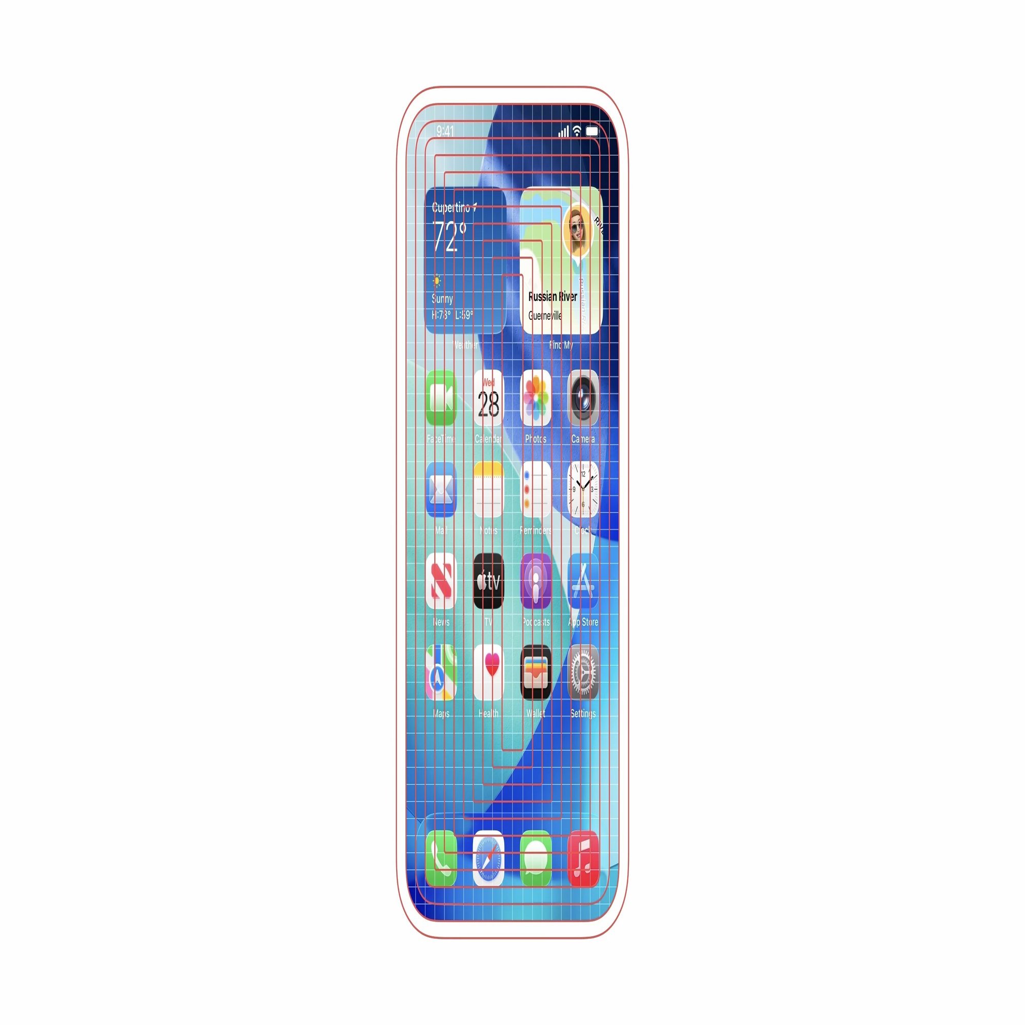 新しいデザインでは、デバイスのベゼル形状を前提として、ソフトウェアはそのベゼルが持つ角Rに対し同心のシェイプを描画することを強く求めています。iPhoneのようなディスプレイの角が丸いデバイスでは、その角Rの値をソフトウェア側で適切に読み取り、描画するUI要素すべての角や余白に適用していかなくてはなりません。そのための仕組みはすでにAppleのUIフレームワークに備わっており、適切なネイティブAPIを使用していれば大きな問題は生じにくいとされています。
