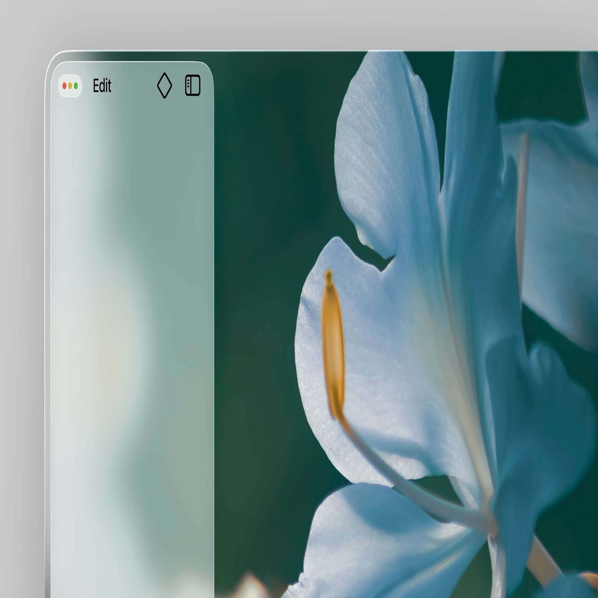 サイドバー背景への映り込みは「Background Extension Effect(背景拡張効果)」と言い、コンテンツエリアの描画内容を鏡像にしたレイヤーをサイドバーの裏に敷き、リアルタイムにブラーをかけながら描画することで実現しています。実際にはそこにコンテンツの延長部分が存在しているわけではないものの、コンテンツに基づく色や形の印象がサイドバーにも映り込むため、コンテンツがインターフェイス全体に広がったように感じられます。