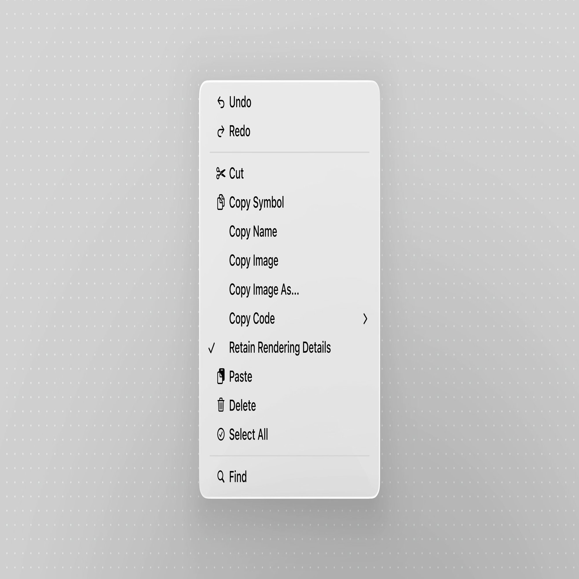 新しいデザインは、このルールに方針転換が生じたようです。macOSのメニューデザインはアイコンの付与が強く推奨されており、システム標準の多くのメニュー項目にはアイコンが伴っています。これらはSF Symbolsや、そのスタイルを模したカスタムアイコンによって表されます。そして、プラットフォーム間——macOS, iOS, iPadOS等——でアクションの意味や表現を統一させることも求められています。