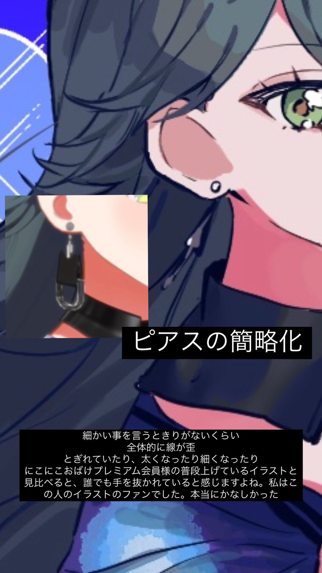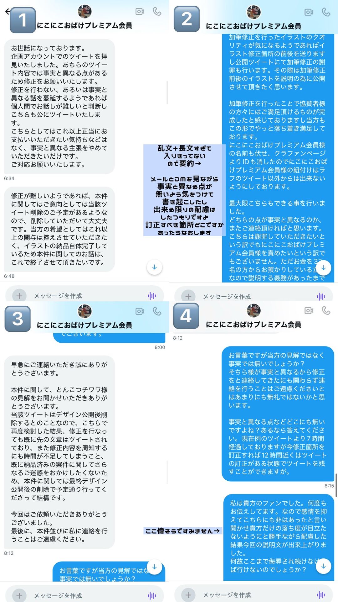 私にも不手際はあったので以前出した説明文には「素敵なものを納品頂いた」と記載しましたが最終的に納品されたイラストも広告に使用できるようなクオリティに達していなかった為、全体的に加筆修正しております。