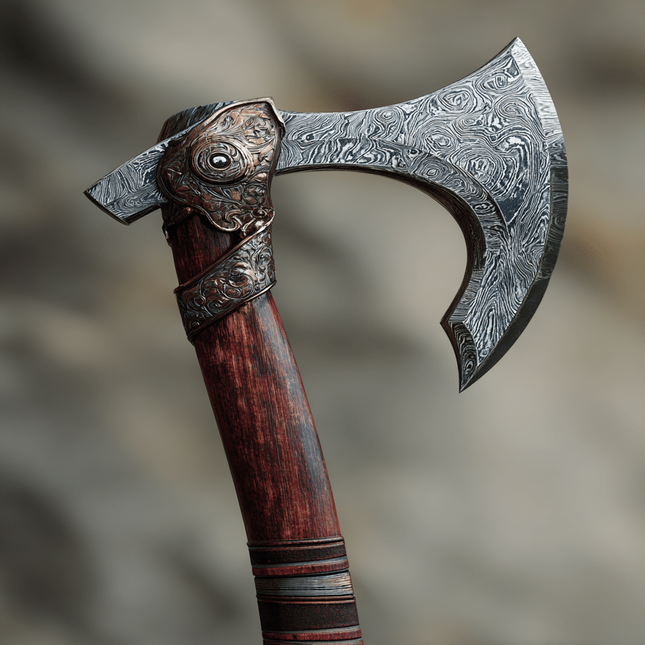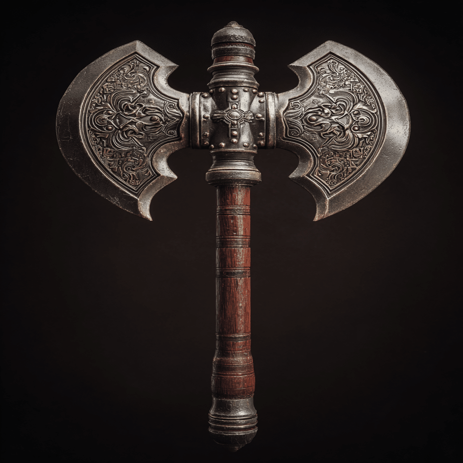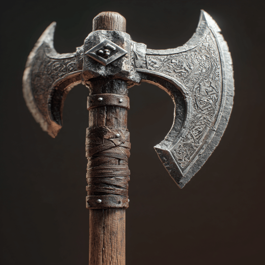 Object: Battle axe, held over shoulder