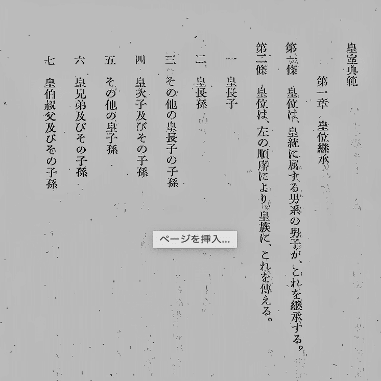 女系継承によつて「万世一系」の王朝が変更されることは、明治憲法制定の中枢にゐた井上毅らがもつとも恐れたことだつた。「王朝の支配」の概念は現行憲法にも引き継がれてゐる。日本国憲法第二条の「世襲」はdynasticの和訳である。