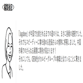 「Jagabee」が中国市場でどのように成長していくのか、今後の展開に期待が寄せられます。