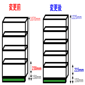 段ボールサイズの変更前と変更後の分かりやすい写真がありますので、ご覧ください。