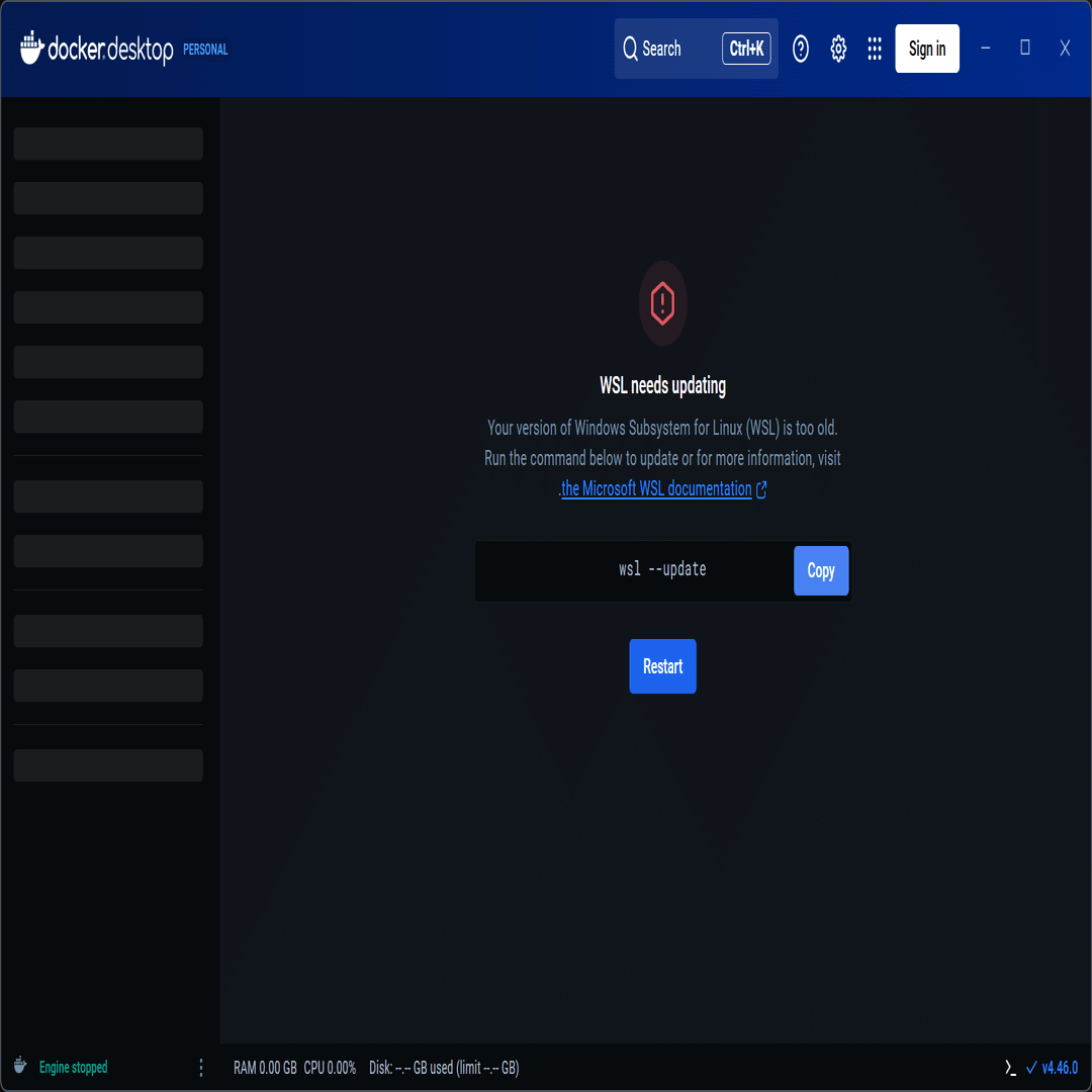 wsl --update終わったらとりあえずDockerのインストールは完了。
