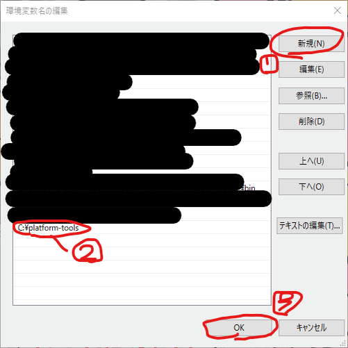 「C:\platform-tools」と入力