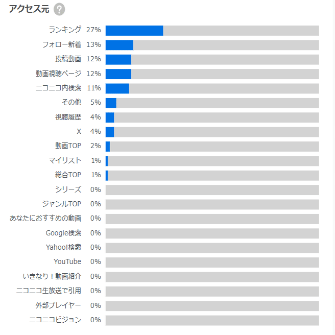 一番多いのはランキングからです。次にフォロー新着から。この動画はデバイス制限されていますが、それでもランキングはかなり重要だという事と、ニコニコ動画においてもフォロワーの数は大事なんだなという事を感じました。