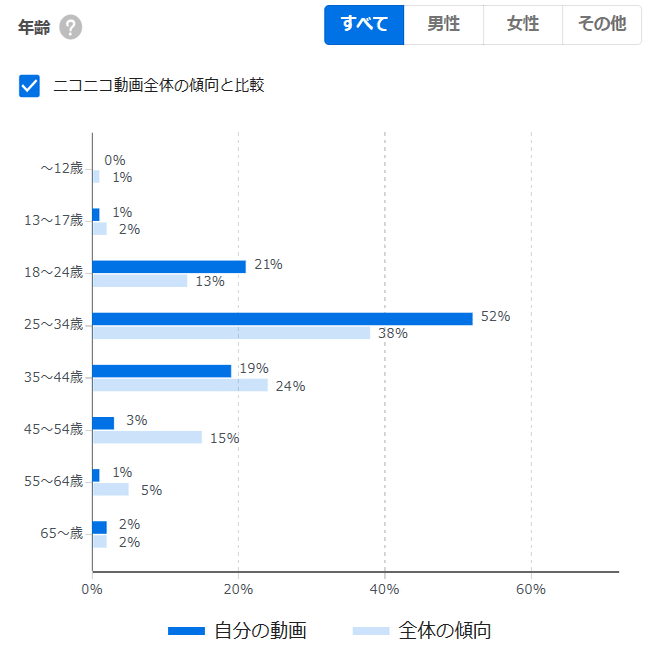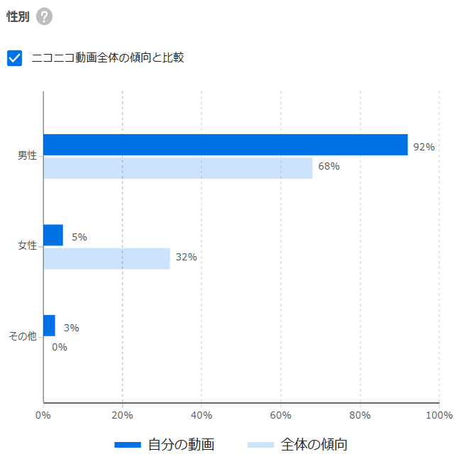 ニコニコ全体と比べると、若者に人気ですね。