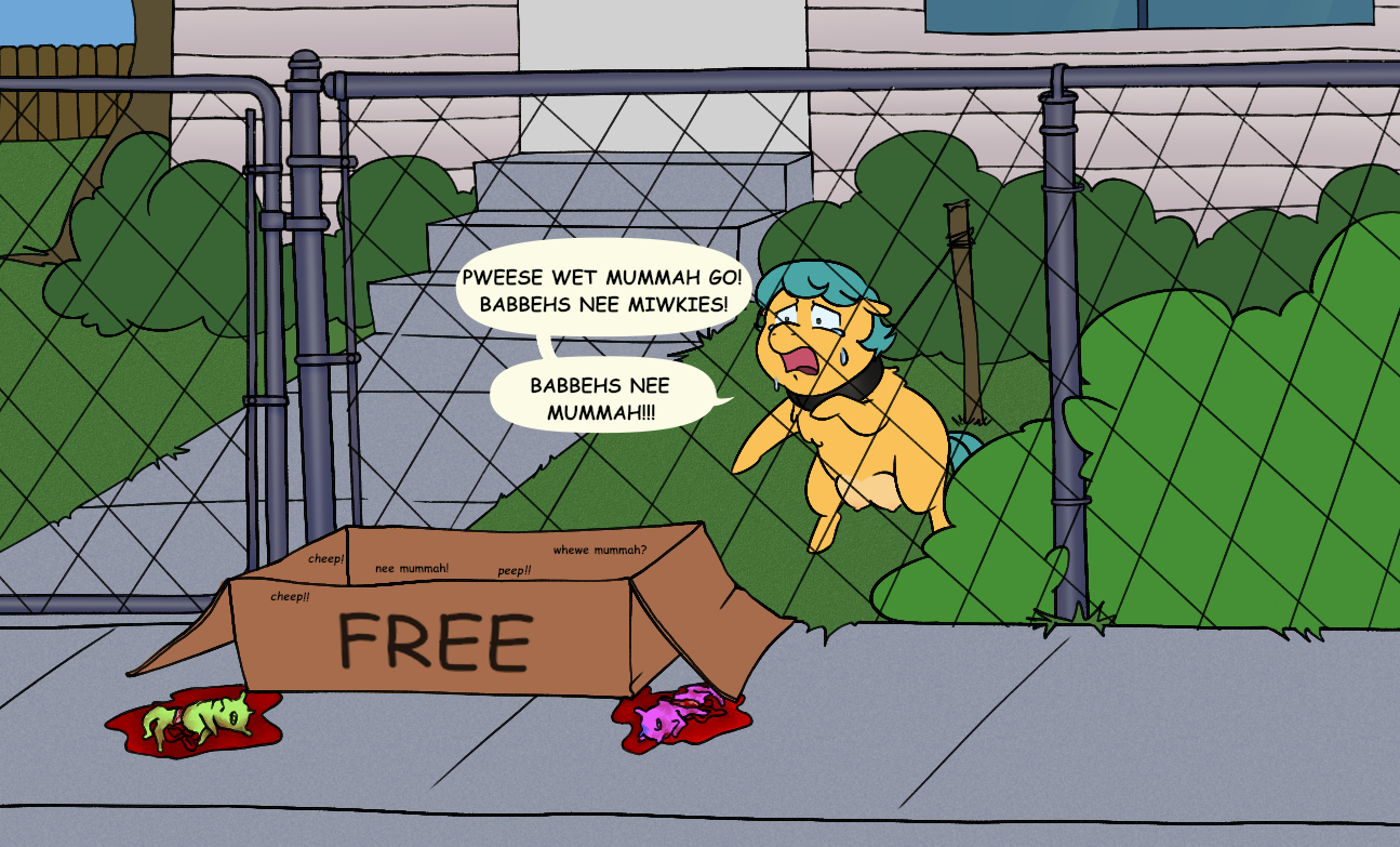 Her owner watch inside and laugh as she try to reach babbehs. He let her wander outside until pregnant and do all over. Each time she think maybe this time keep babbeh? No, she does not learn.