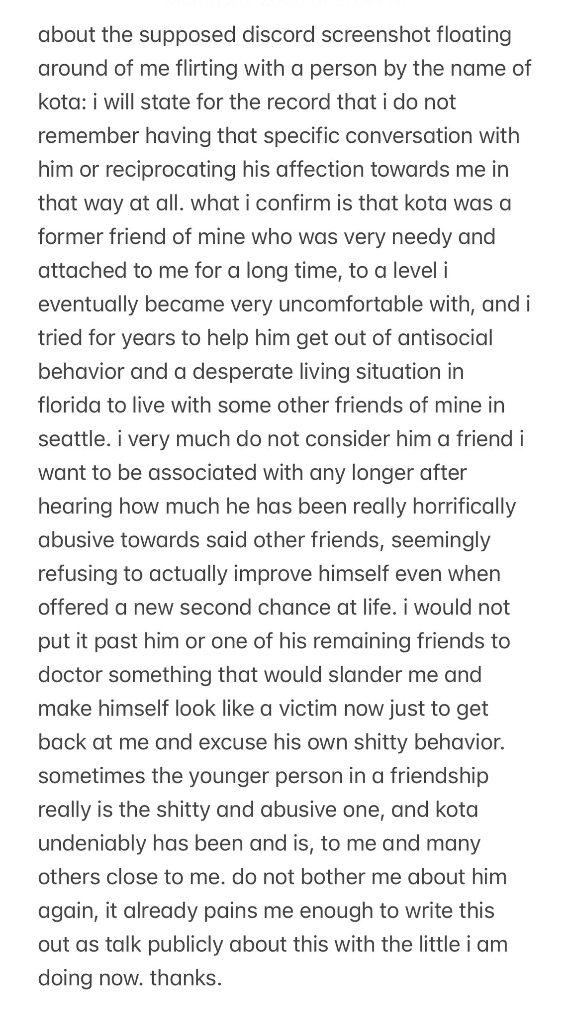 no i still dont think i deserved any of the hatred n shitcanning n doxxing i got from what was ultimately teenage relationship drama blown out of context