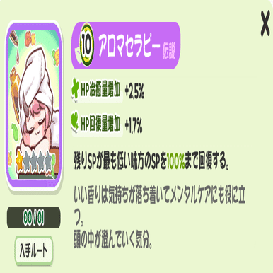 上記のアロマセラピーは「HP治癒量増加」「HP回復量増加」の効果をそれぞれ持つが、どう違うんだよ。