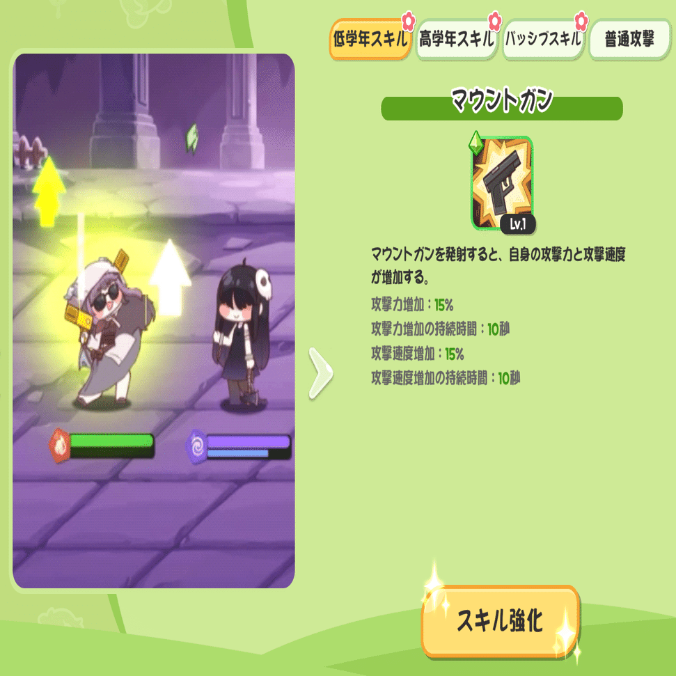 低学年スキルは自身の攻撃力と攻撃速度を上昇させるバフ技