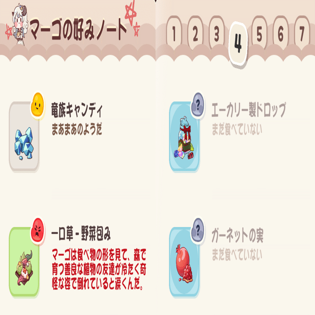 しかし、これはマーゴだけが偏屈なのかと言うと、意外とそうでもないのだ。例えば木の精霊であるビッグウッドも植物の料理を嫌がるし、大地の精霊のガヴィアに鉱石を与えると怒る。「かぼちゃが好き」と言っているスピッキーにカボチャ料理を出すと泣くなど、自身の属性に近しいものを料理として出されると拒絶するキャラクターは一定数居る。