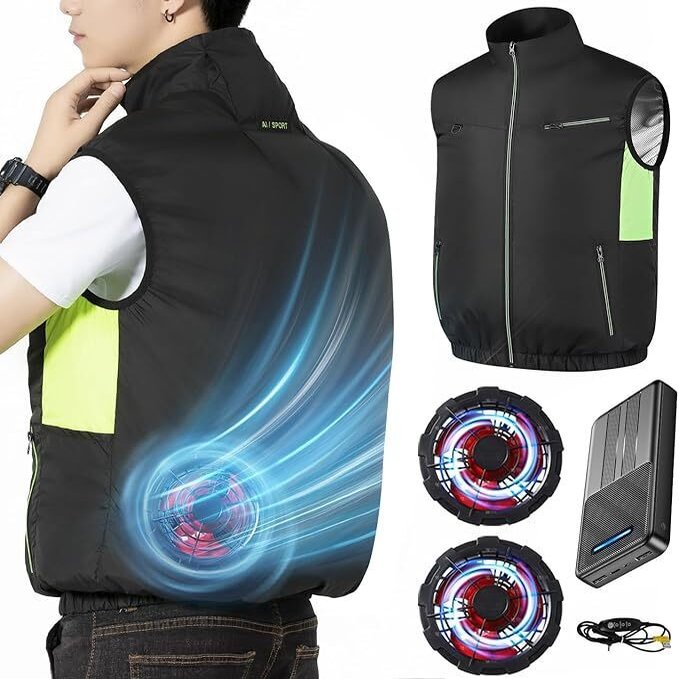 ベスト型でファンがくっついていて、USB typeAのモバイルバッテリーで給電するタイプ。