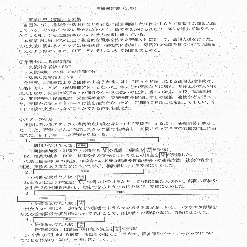 黒塗り忘れがあって、そこに抱樸の名前があったわけだから、これも抱樸か、まあ抱樸じゃなくても身内のような団体だよね。きちんとした公的機関に研修うけにいってるとかじゃなくて、身内で研修費循環でしょ。