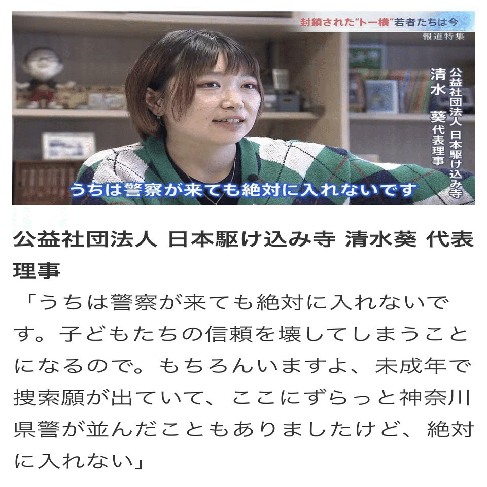 トーヨコとかの家出少女には弁護士が代理人について、すべての対応を弁護士がやってたらしいんだよね。警察とか児童相談所とか。