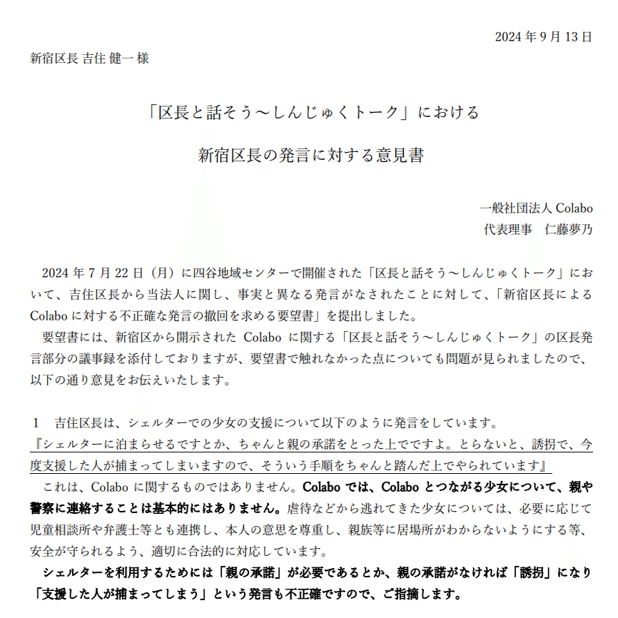 な「ところでここまでやっても、この保護して弁護士が手厚く電話対応すべてしてるような女の子が誰だったのか、本当に存在したのかも東京都にすら見せてないんでしたっけColaboは」