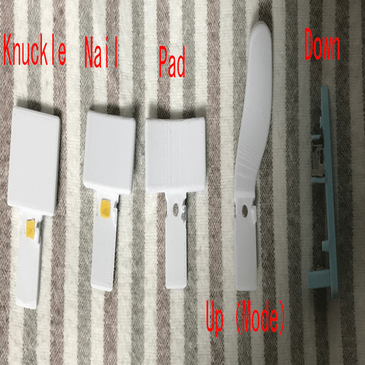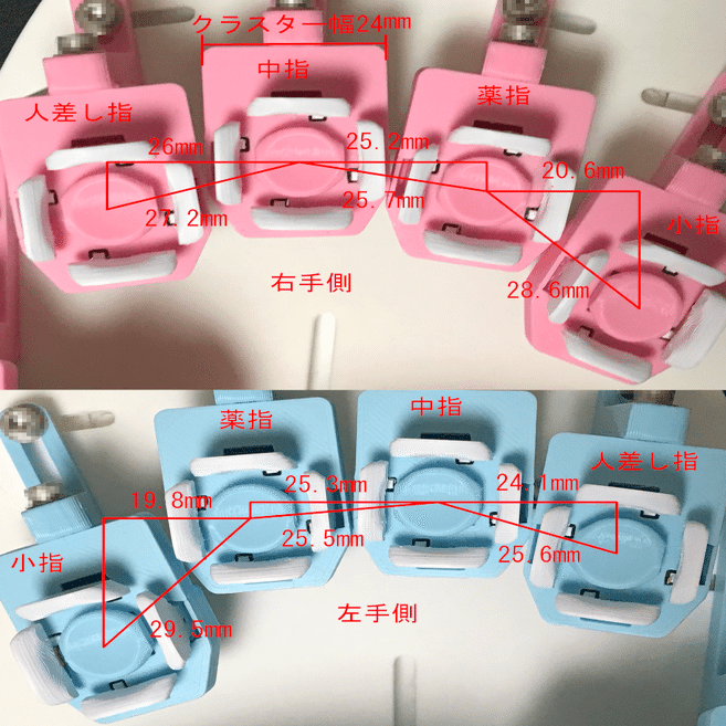 フィンガークラスターは人差し指から小指まで共通のパーツで、5つのキーとクラスターボディで構成されています。