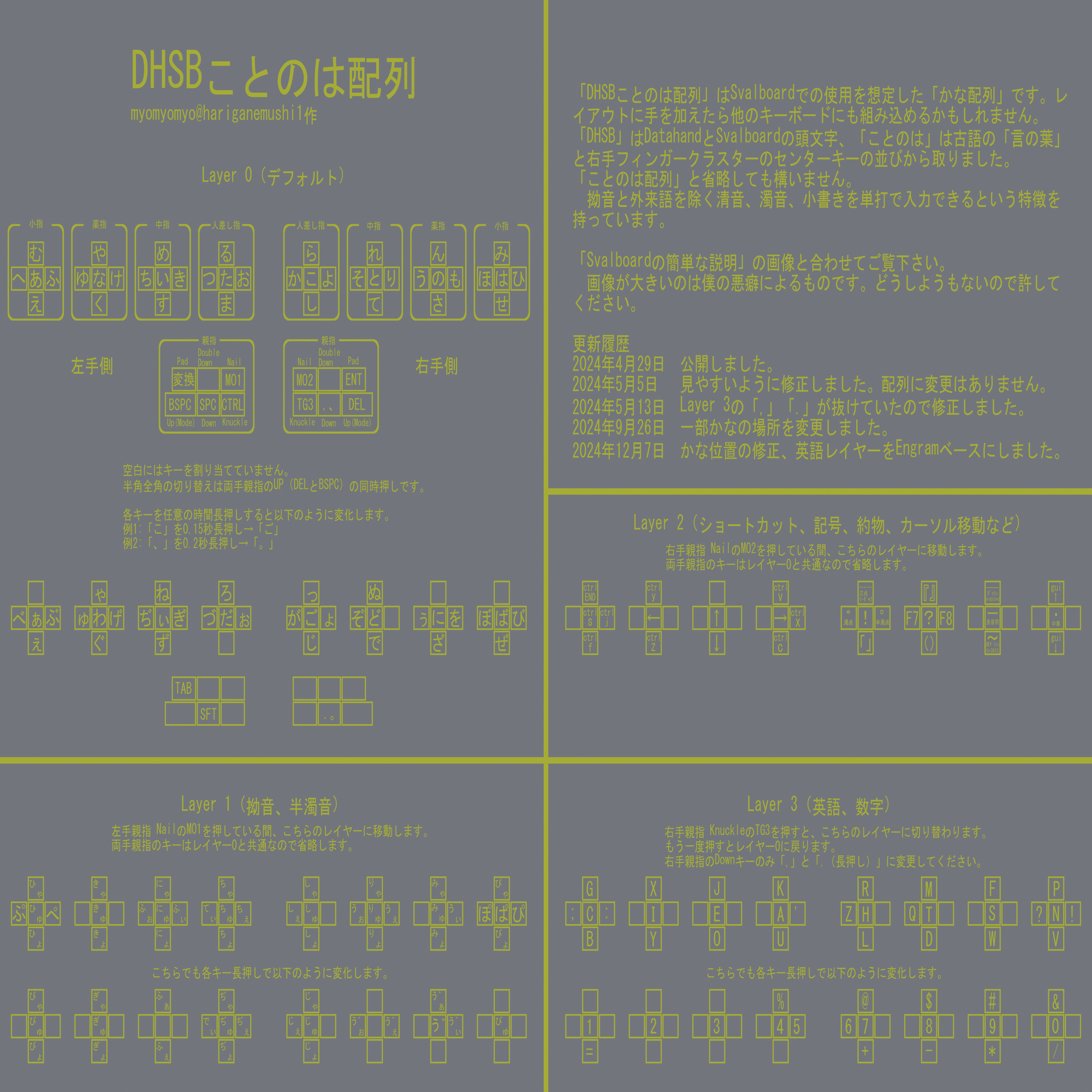 SvalboardとDHSBことのは配列の運指トレーニング兼フィッティング記事をアップしました。
