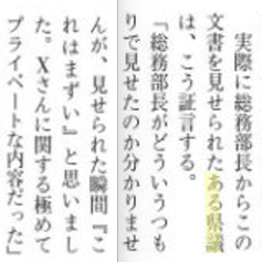 週刊文春電子版7月17日を語る文春記者トークは「実際に総務部長からこの文書を見せられた」と語る。竹内氏が、迎山氏から聞いた情報を週刊文春に教え、週刊文春が迎山氏に直接取材した。それが、電子版そして翌日発売の7月25日号記事になった。このリークは公用渡瀬パソコンのなかに問題の多い私的文書が大量に入っていることを世に広く知らしめた最初だから、本件の最重要事案のひとつだ(ただしその直前に、アエラ7月13日今西憲之記事が7月8日百条委員会理事会を持ち出して、公用渡瀬パソコンの中にプライバシーが含まれていることに言及していた。これも竹内氏がリークしたとみられる)。それに関して第三者委員会からの問い合わせがあったことが、竹内氏を苦しめたに違いない。