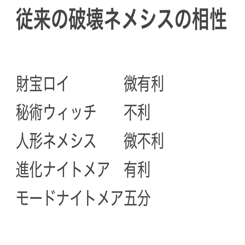 どうもカノッサと申します。前回に引き続き破壊ネメシスについてのnoteになります。