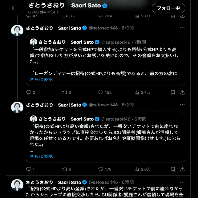 さとうさおり氏の一連の行動は、彼女が 「大物政治家」 を装うための虚偽と誇張に満ちている。