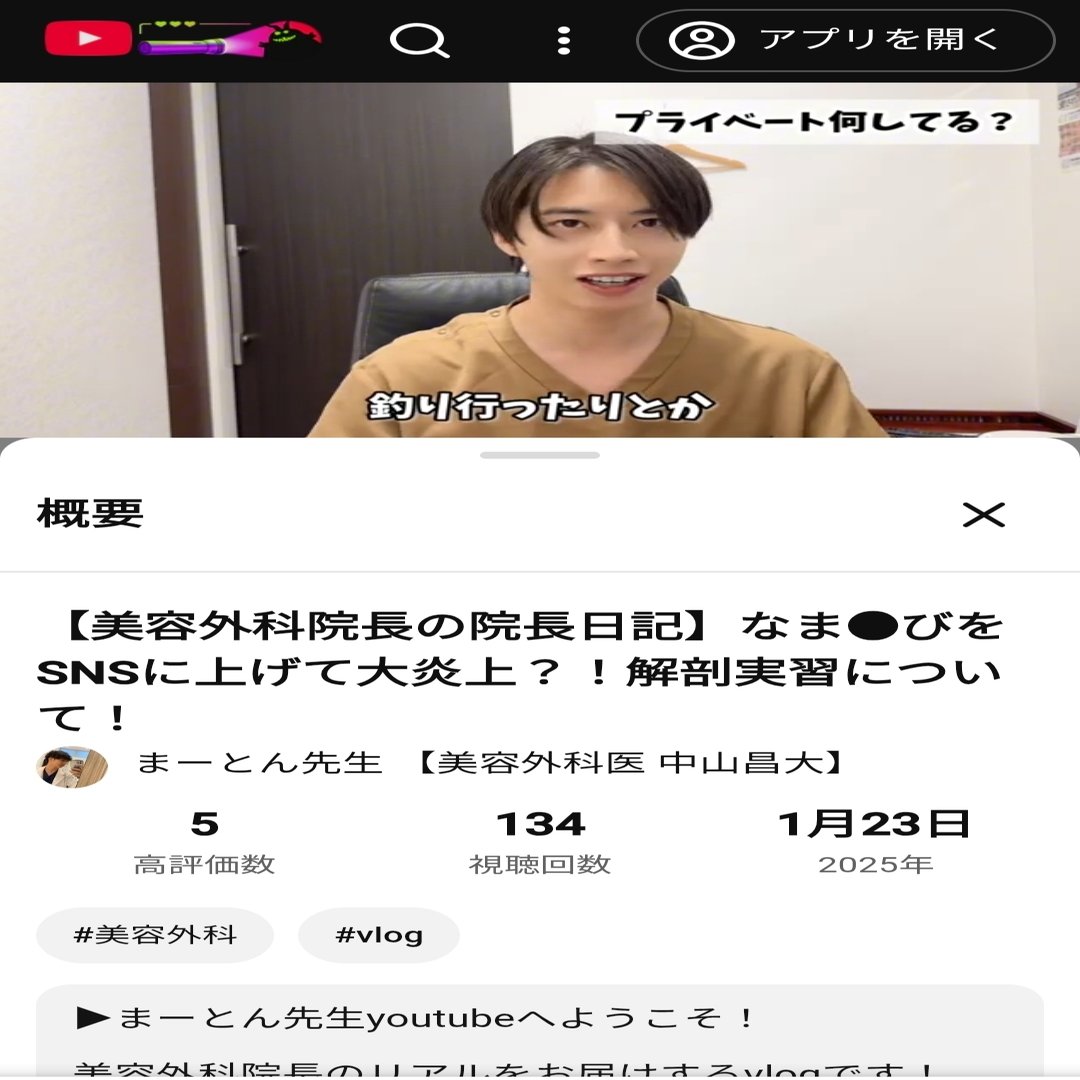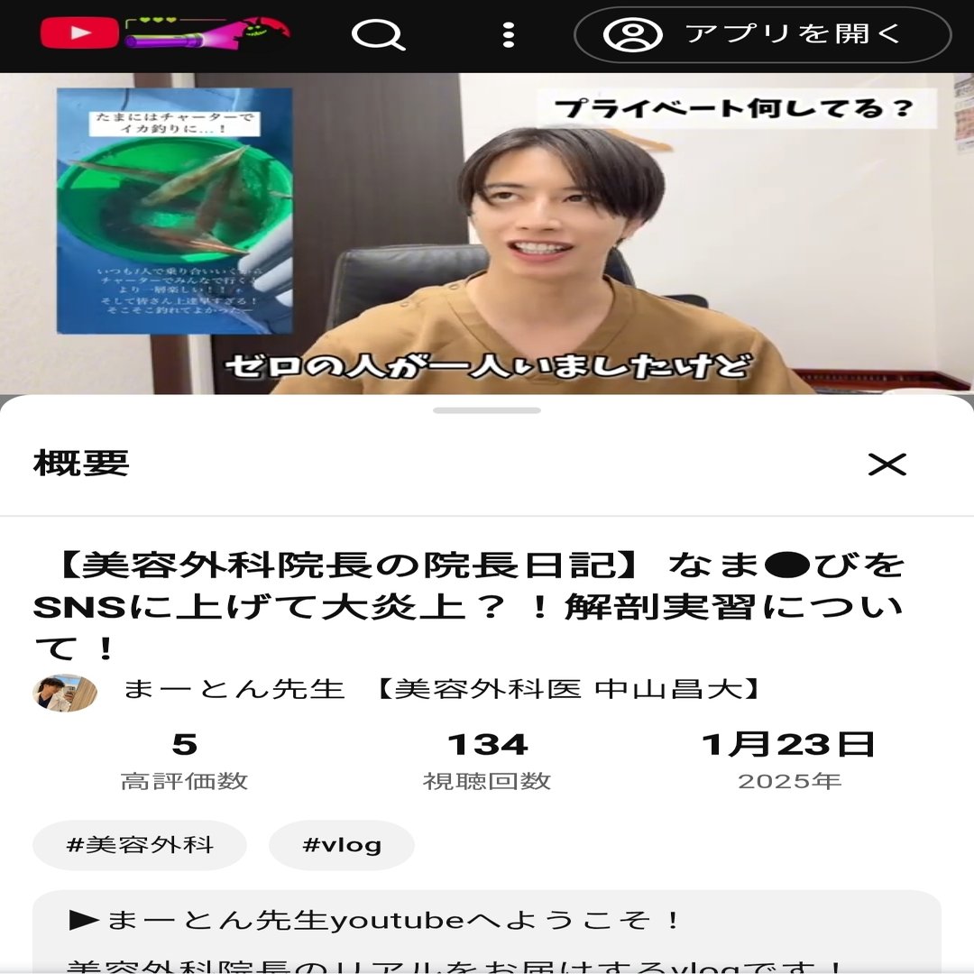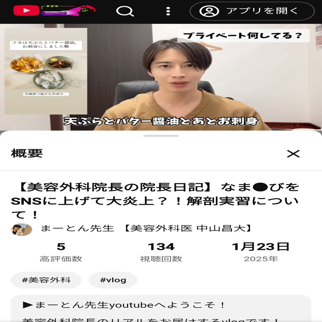 本題に戻って1:12の中山医師による「イカを捌く」発言に関して。ここでは趣味のイカ釣りのことに言及していて「捌く」の使い方には問題はないだろう。ただこの次の動画、1月28日にアップされた動画では「ドクター2人で(患者)を捌いていった」と述べている。YouTube視聴者がどの順序で動画を見るのかは不明だが、登録者はアップされるたびに動画を見るのではないだろうか?「イカを捌く」と言っていた次の動画で「患者を捌く」と発言すれば当然視聴者は「患者に対してイカと同じ【捌く】という動詞を使うのか?」と違和感を持たないだろうか?更には「患者を捌く」と発言した5日前の動画では黒田あいみさんが行った献体写真不適切インスタ投稿に触れているが、これでは言及した炎上事件からあまり何も学べていないと言えないだろうか?中山昌大さんは友達と釣りに行ったイカと同列に患者さんを捉えていて、釣ったイカを天ぷらやお刺身、塩辛にして食べるのと同じ感覚で患者さんに対して施術しているということだろうか?