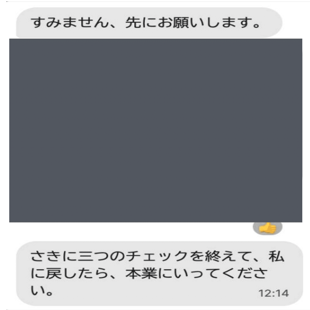 「さきに三つのチェックを終えて、私に戻したら、本業にいってください」