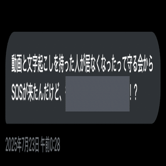 「動画と文字起こしを持った人が居なくなったって守る会からSOSがきた