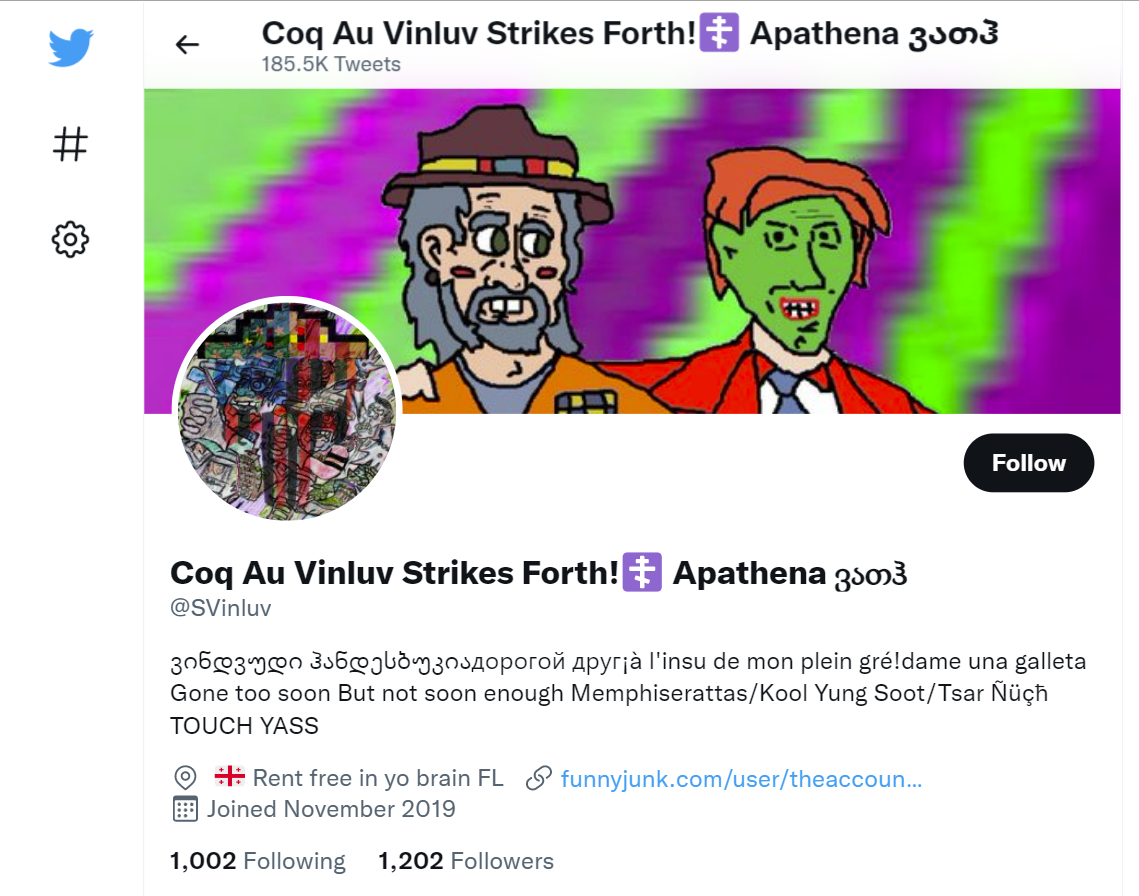 Also, the OP PLed that he's mutuals with the minor the OP is about. Also also, a Google search on "Vinluv Handesbukia" turns up an entire Youtube channel full of retarded shit. (Archive) Also also also, it turns up a Twitter account with the exact same avatar as our boy. 186 THOUSAND Tweets! (Archive)