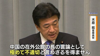 大国の外交官として、著しく品位を欠くものであって。自民党として到底看過できるものではないですし、中国政府に対しまして強く抗議をいたします。