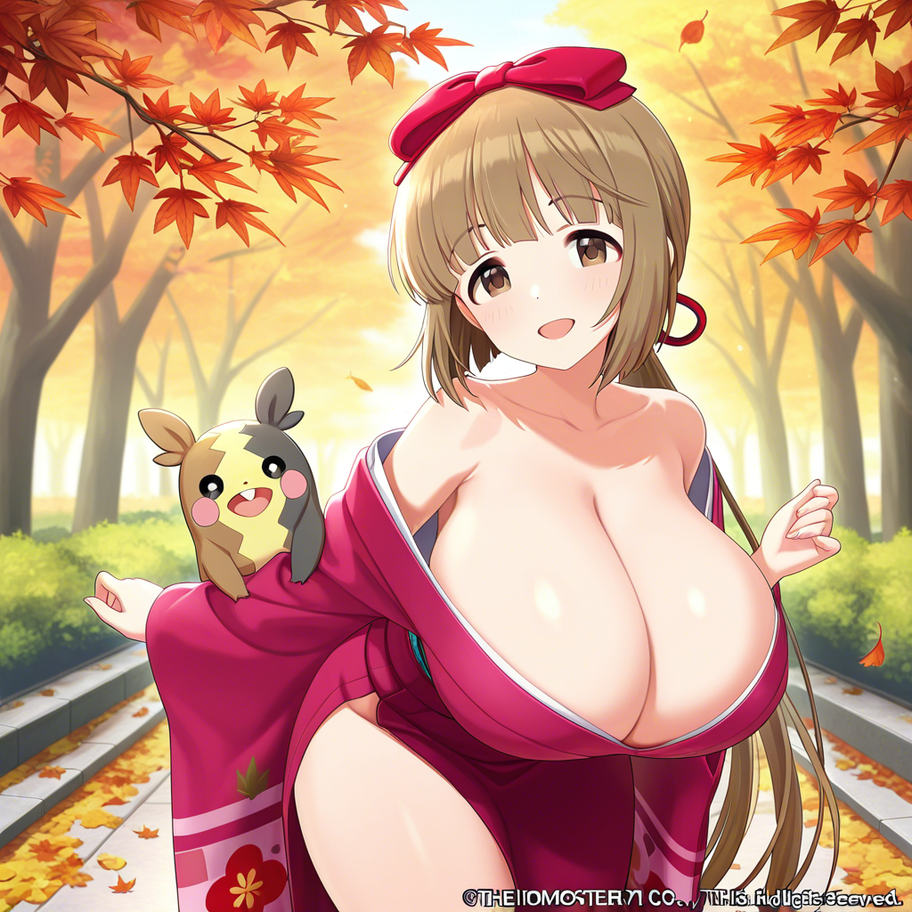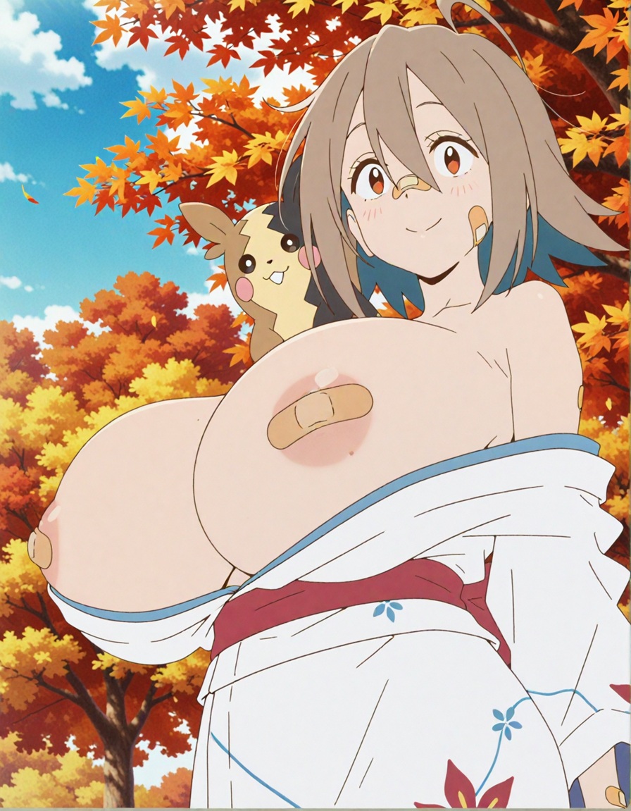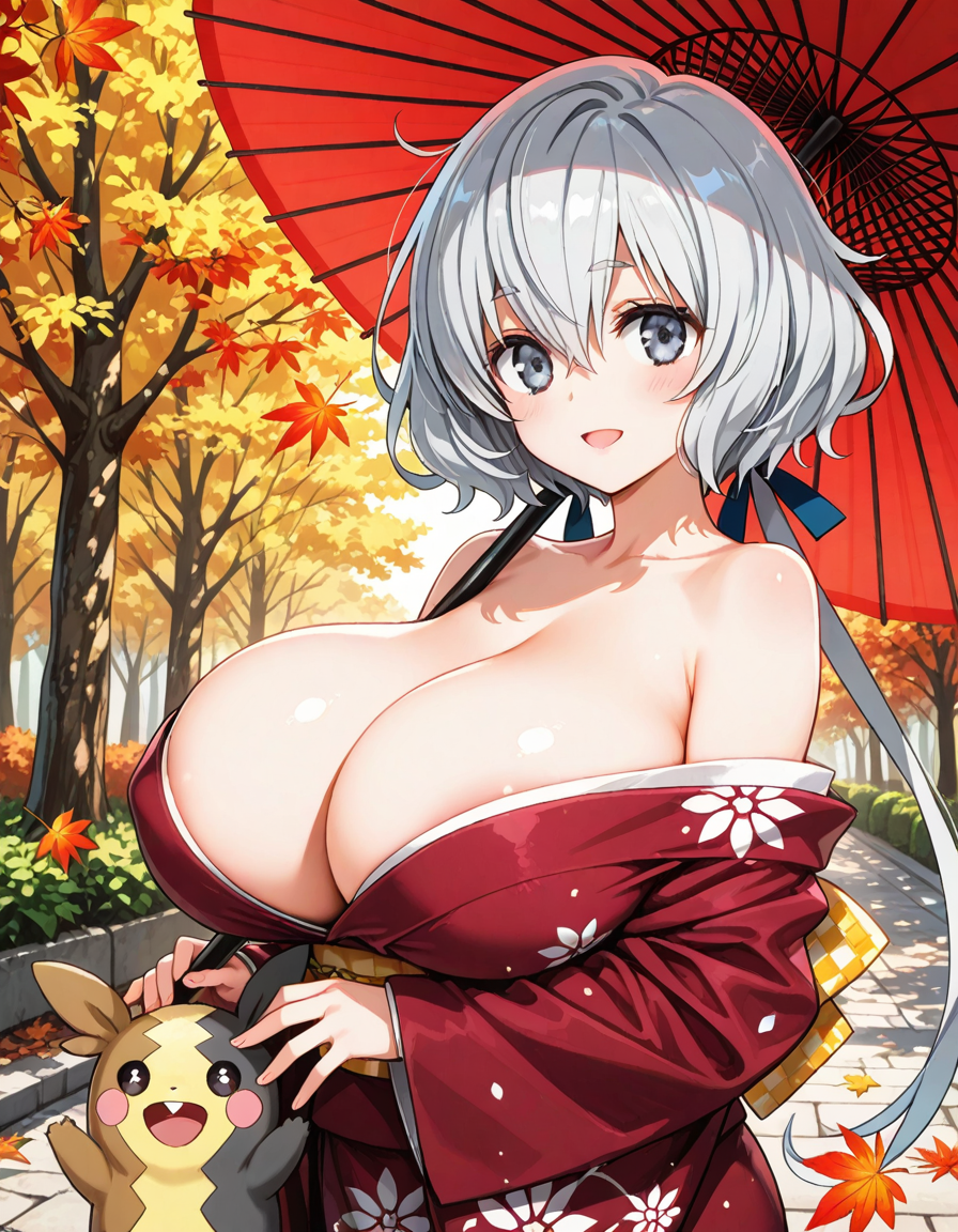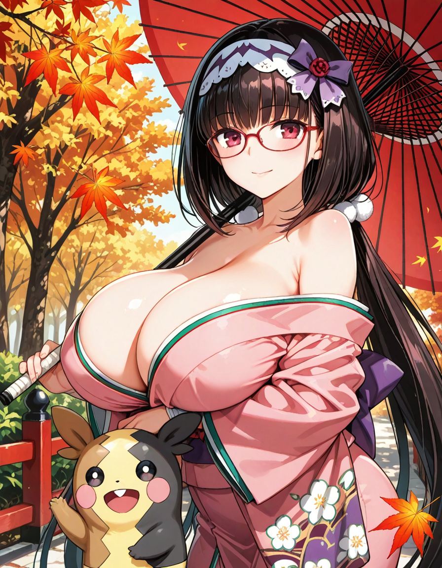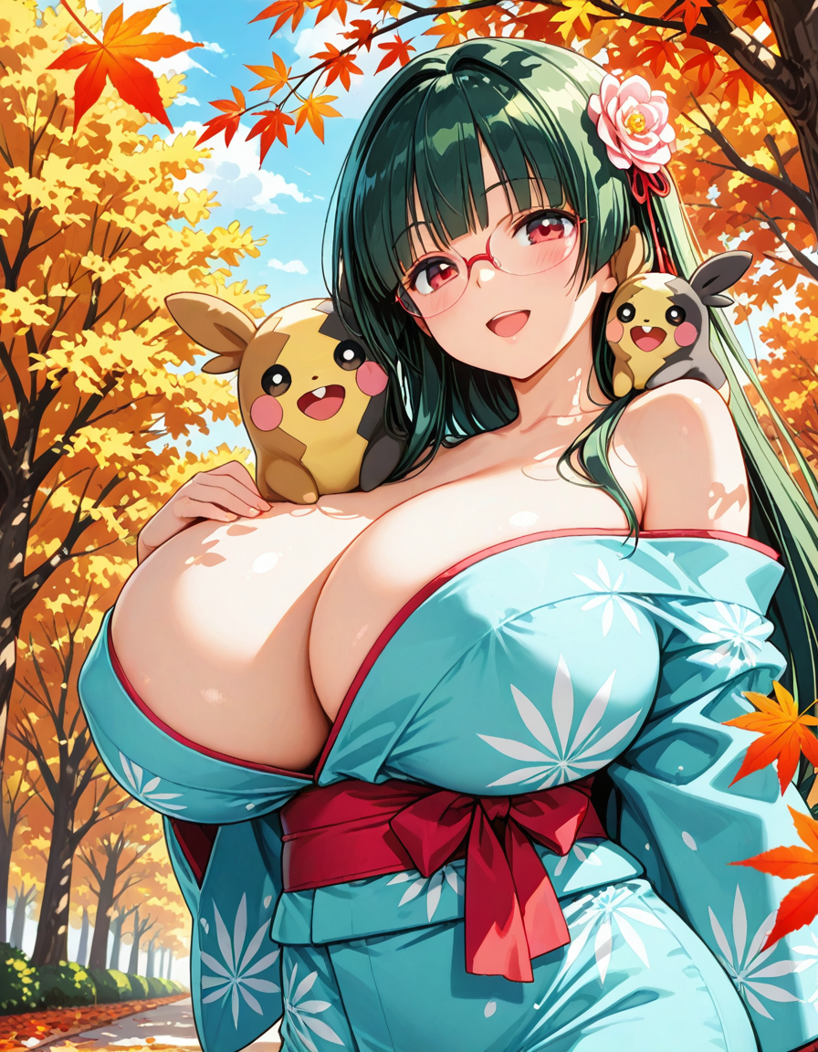 着物で盛るペコ!kimono, bare shoulders, autumn, outdoors,