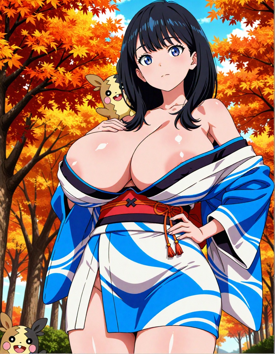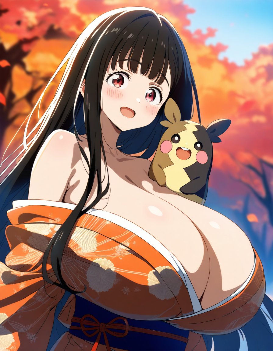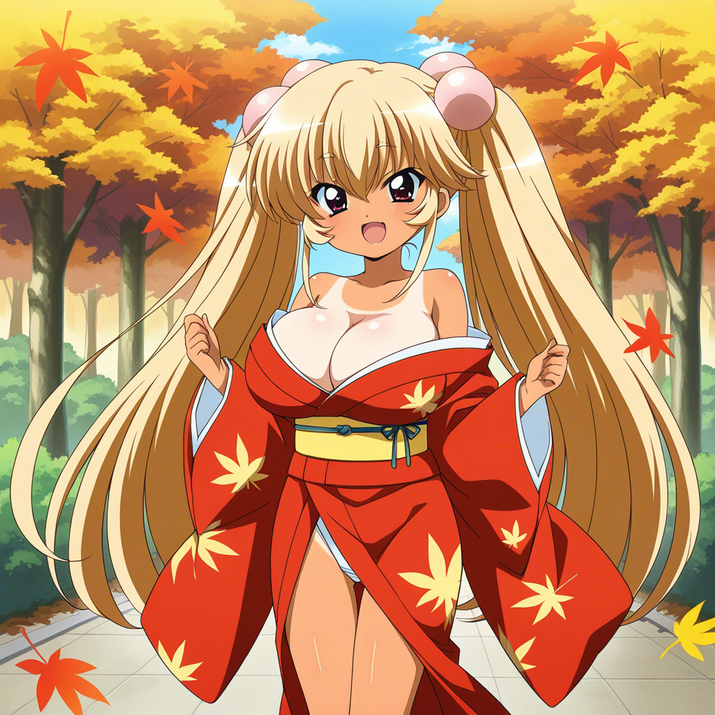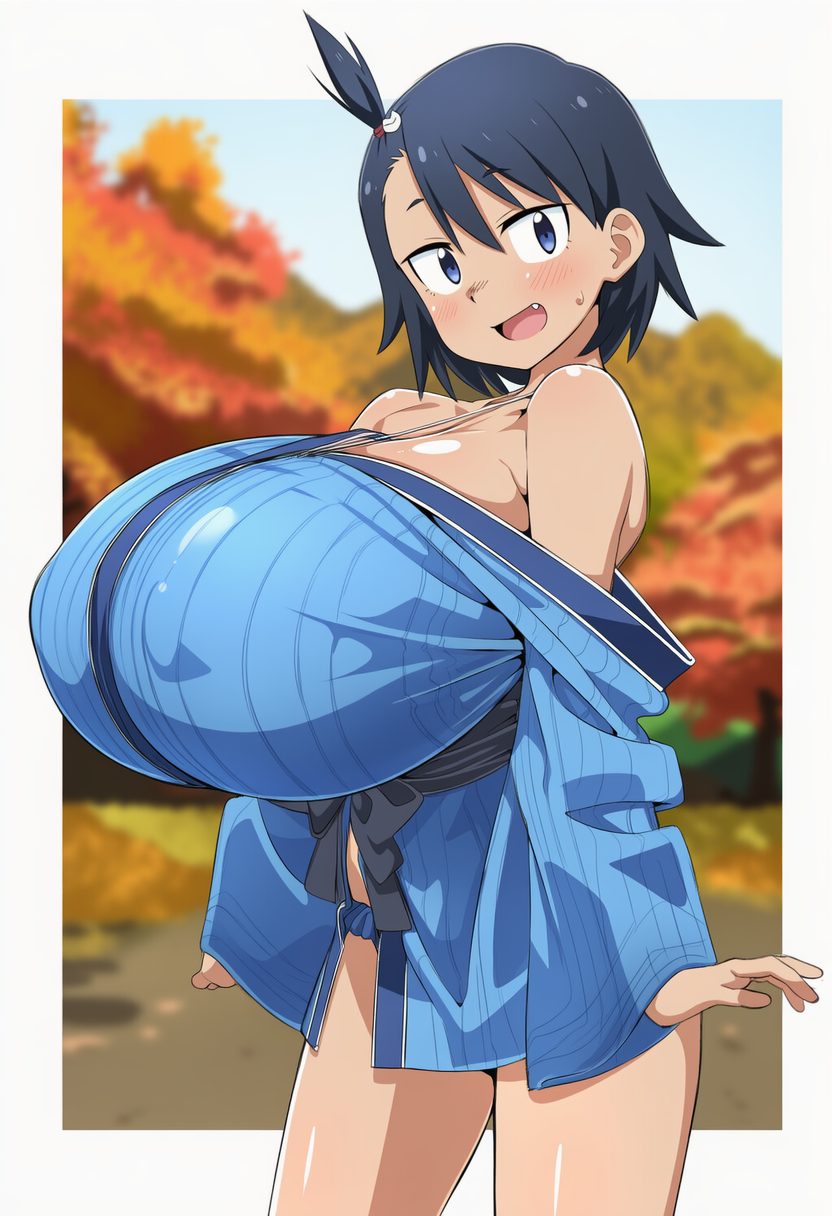 着物で盛るペコ!kimono, bare shoulders, autumn, outdoors,