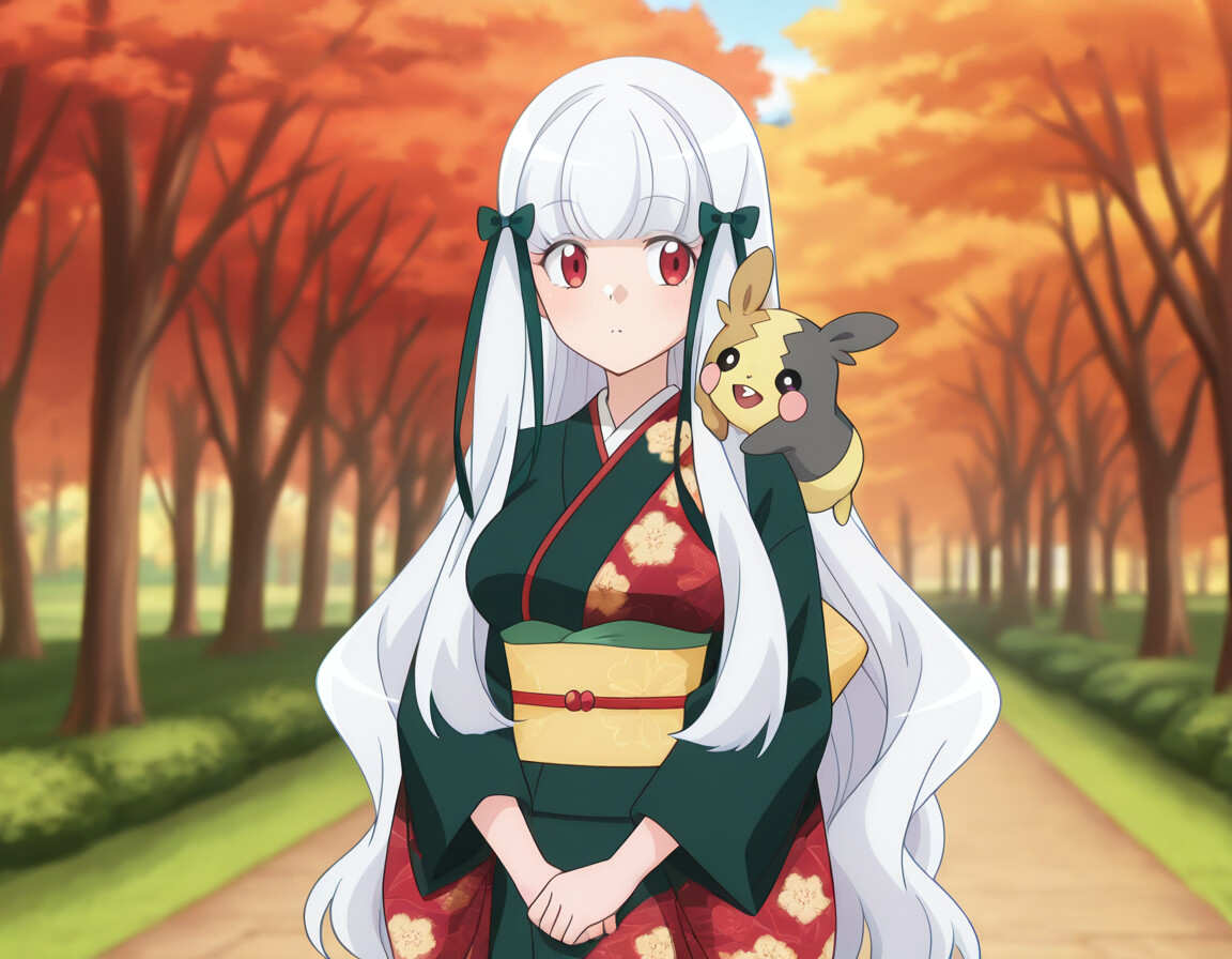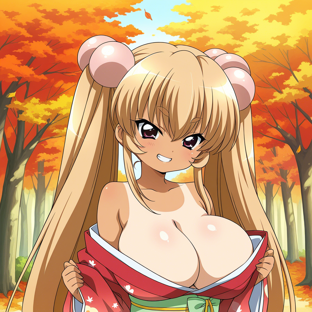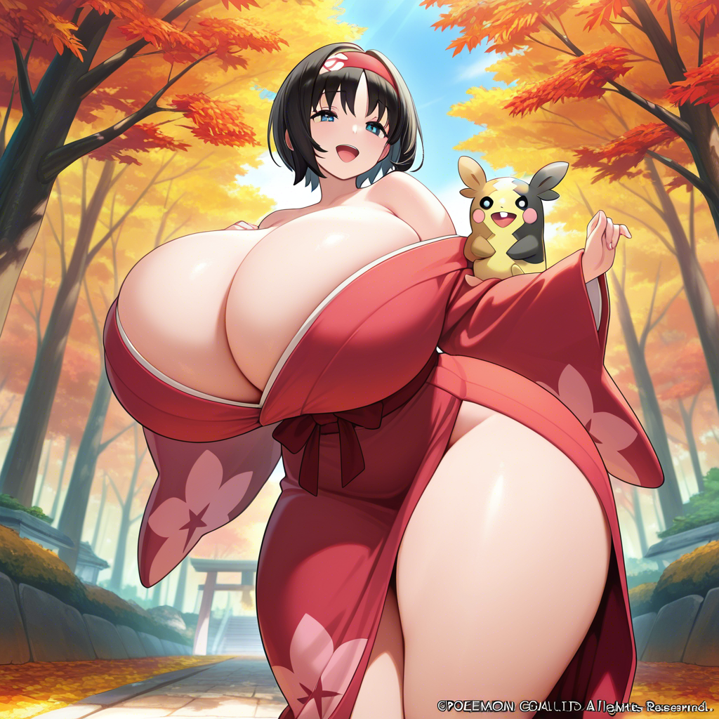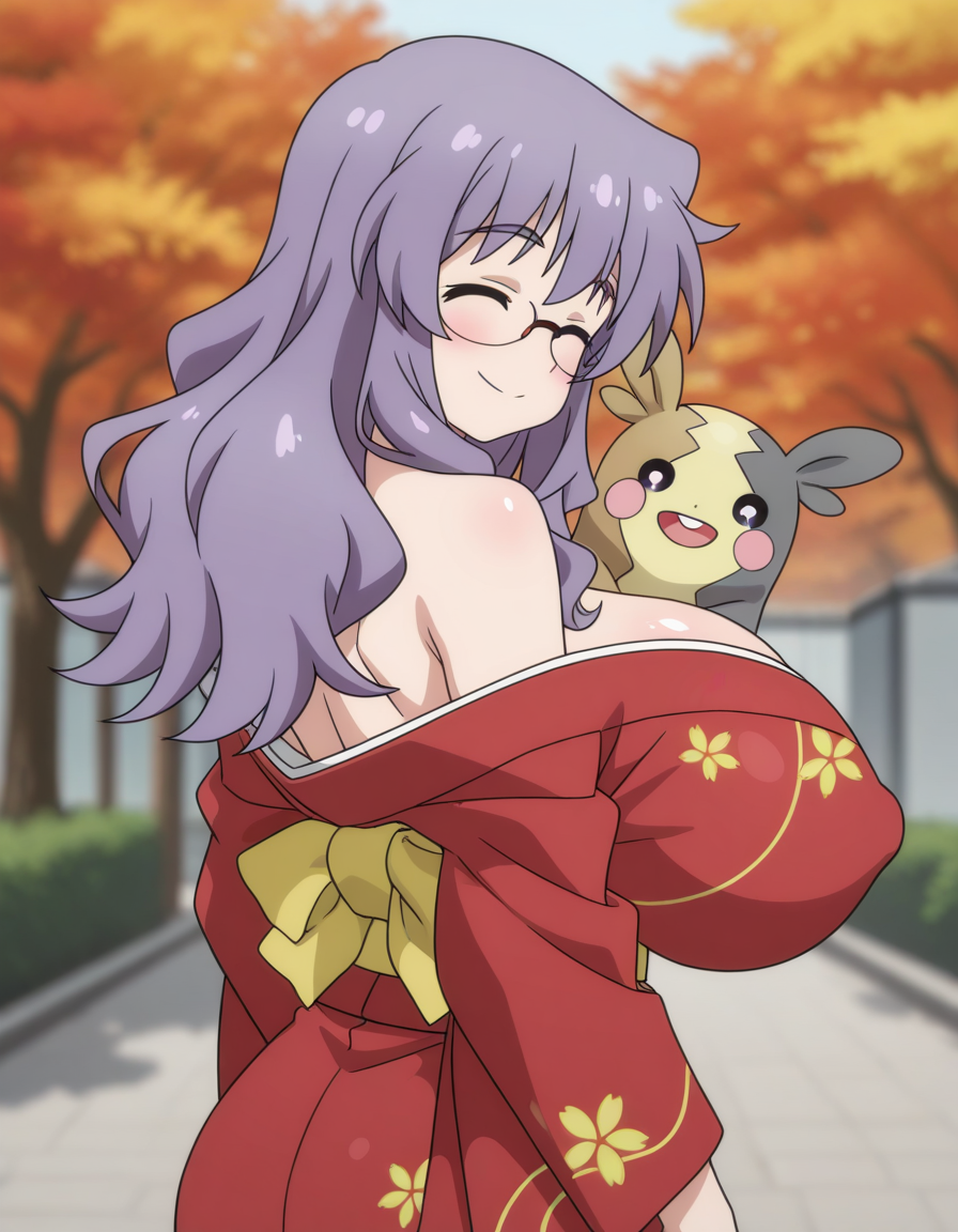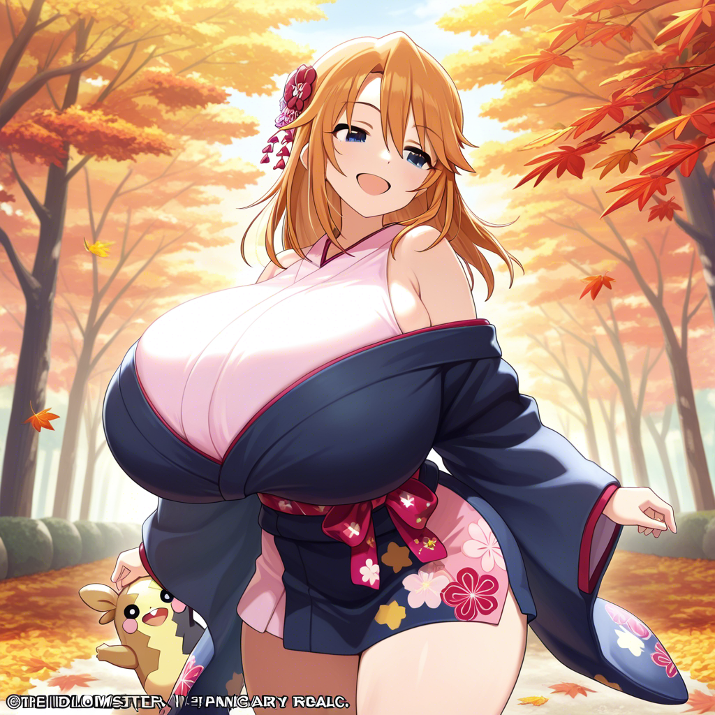 着物で盛るペコ!kimono, bare shoulders, autumn, outdoors,