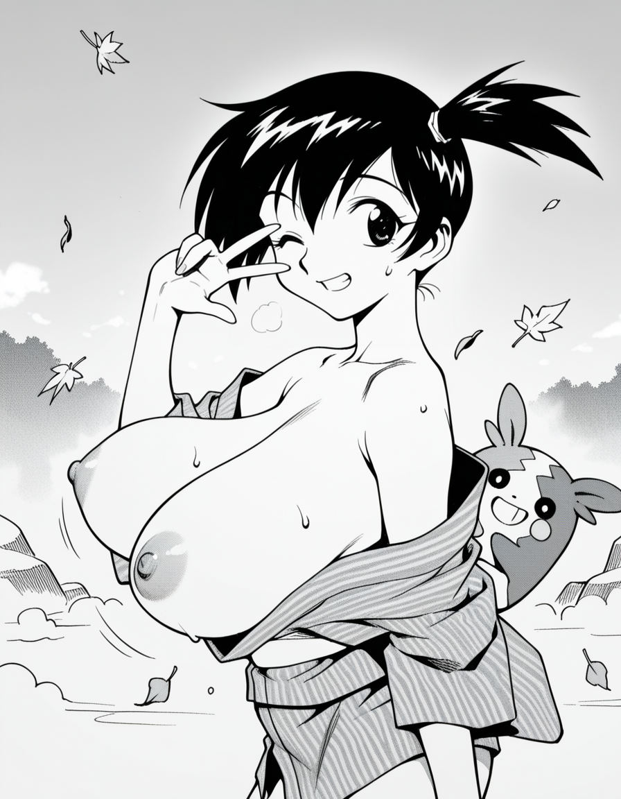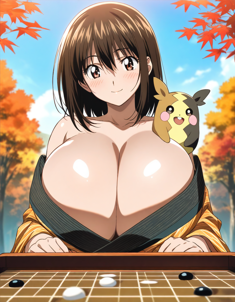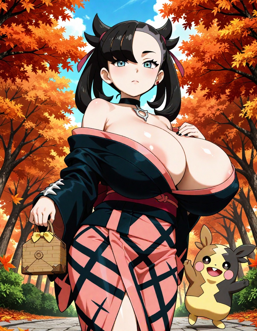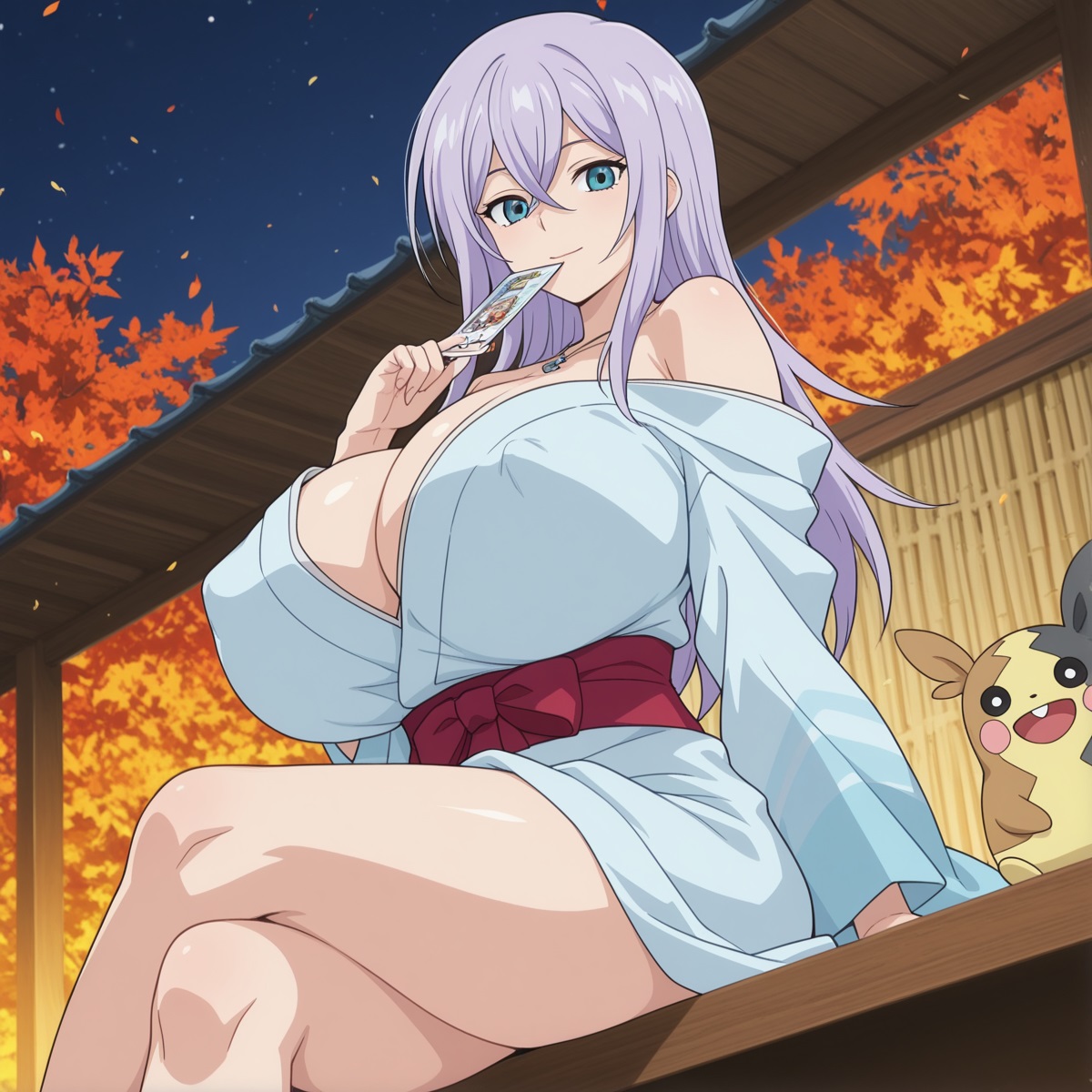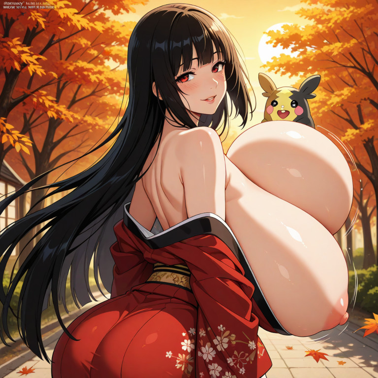 着物で盛るペコ!kimono, bare shoulders, autumn, outdoors,