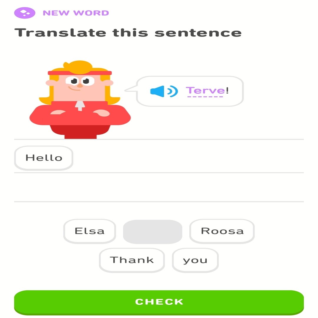 そことそこが違う語じゃなくて活用形の違いなのは例文を見るうちになんとなく察してねっていう感じなので、その言語や言語学一般についての事前知識がないと相当厳しいです。例えば、私は「あーこれ斜格で語幹が交替するタイプかなあ」とか、「あーこれ部分属格みたいに全体と部分を指す場合で格が変わるんだな」などと思いながらやっていたんですが、この言葉の意味がわかるレベルの言語学の知識がないと教科書なしにDuolingoだけでやるのは厳しいです。なので「アプリは副教材」が原則です。
