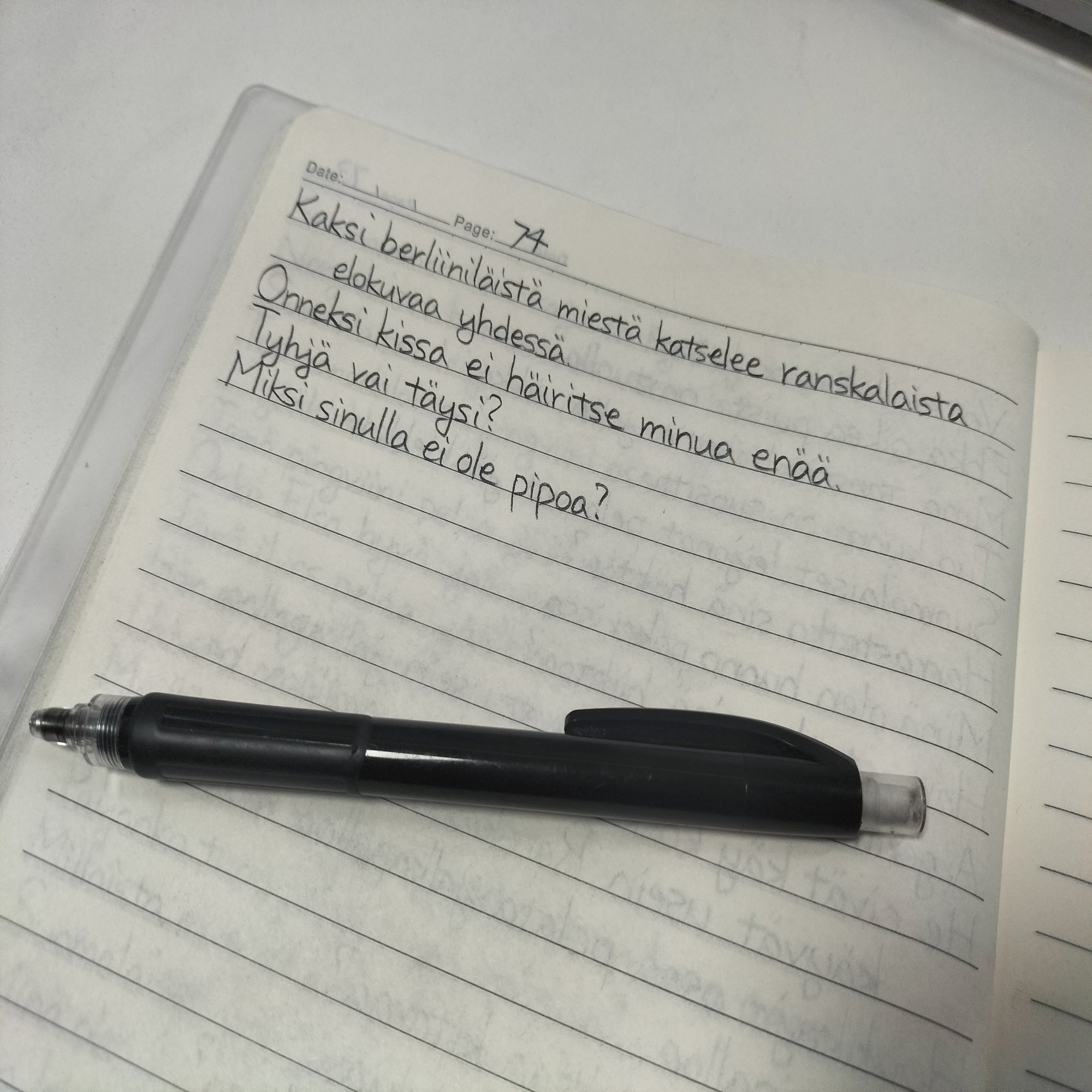 やっているのはDuolingoのフィンランド語なのですが、出てきた例文を片っ端から写経しているので全然アプリに見えませんね。アプリの方はあとユニット8つくらいです。まずアプリでやって例文をスクショし、数時間後に書き写してます。案外やり方として悪くないです。 #0円語学生活 pic.twitter.com/OkFnaw7NdD
