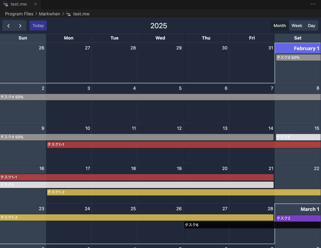 最大の特徴はテキストベース(Markdown様)でスケジュールを記述すると、自動でビジュアライズしてくれる点です。