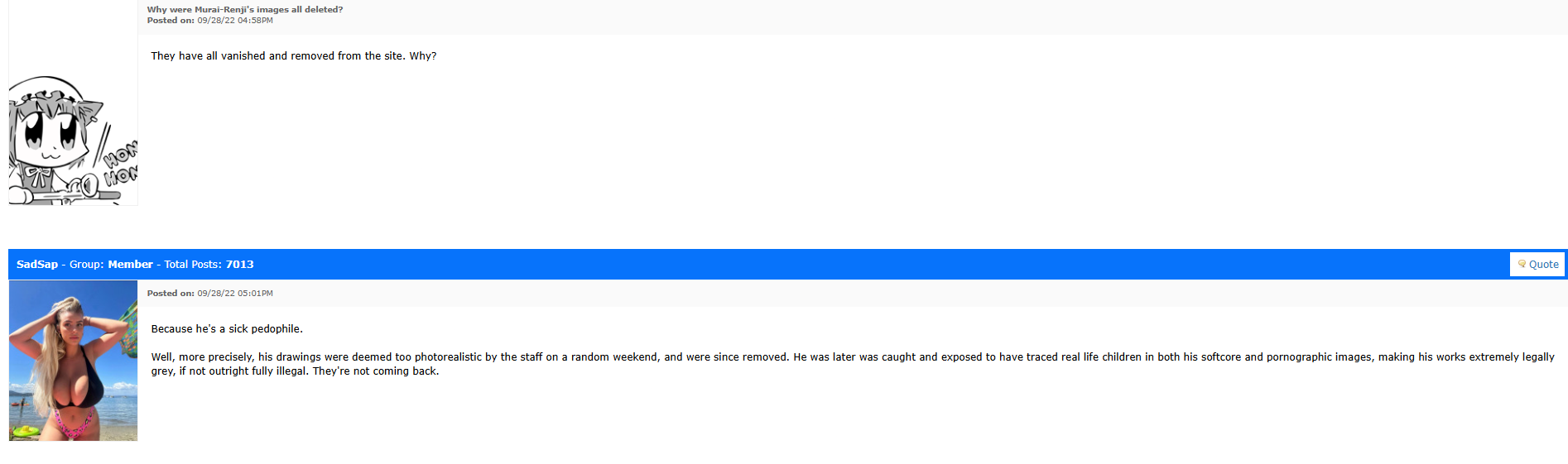 So a lot of websites that allow lolicon are solely because the admins allow it.