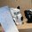 一人は首を傾げ、一人は団扇で仰ぎながらじっと見ています。