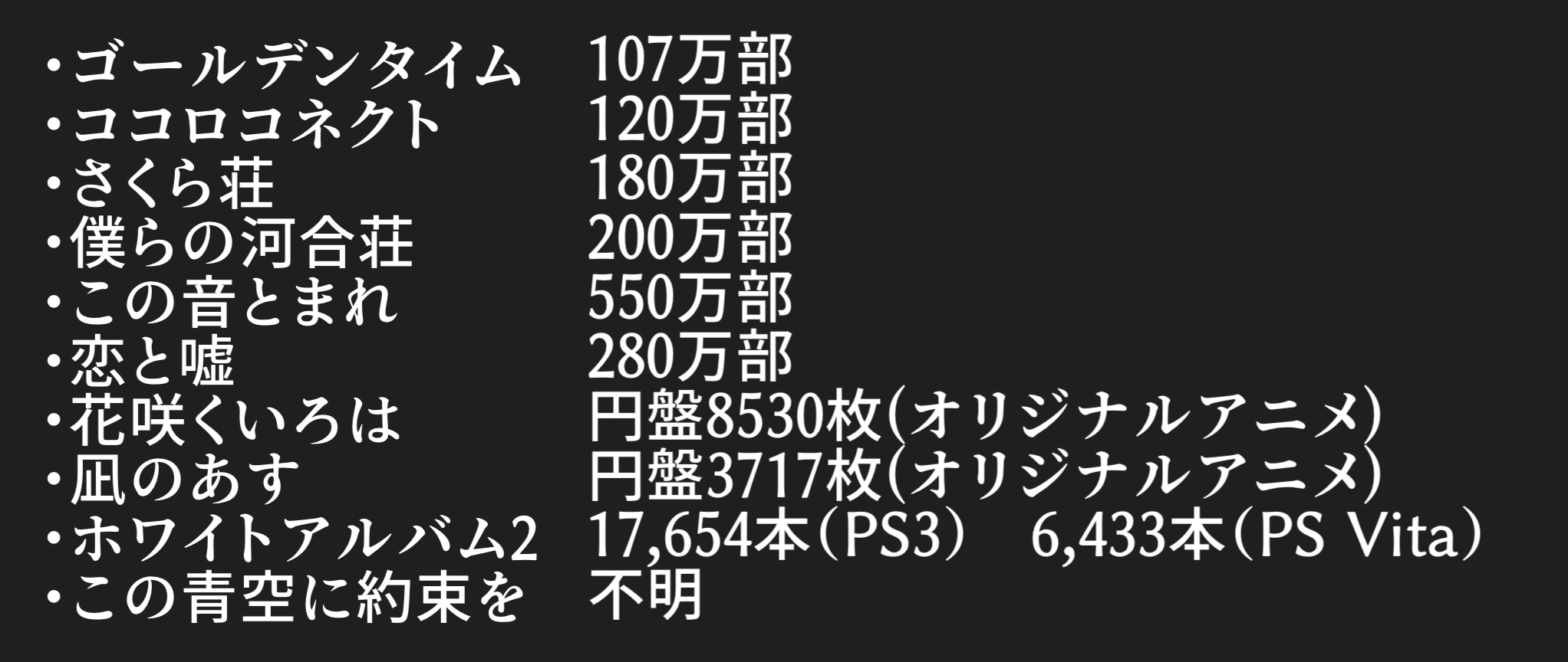 現在までで出た作品ってどうなってるのか教えてくれよ