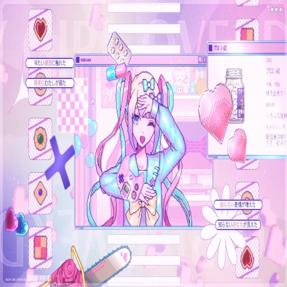 その後通話にて、顔合わせを兼ねて「使用素材」「使用する曲」についての会議を行いました。Utopiaさん、あるひまさんの2名はうごメモを主に活動されていることもあり、「うごメモ素材でやることになるのかな?」と考えていましたが、「伝わりづらい」「各々の強みが出ない」ということで却下。ゲームやアニメなどの素材がいいのでは?という話になり、その後、私が提案した「Needy girl overdose」を84kbさん、Utopiaさんが知っており、賛成してくれたので、素材はNeedy girl overdose(ニディガ)になりました。あるひまさんにはイチから履修してもらうことになりました。マジでありがとうございます。