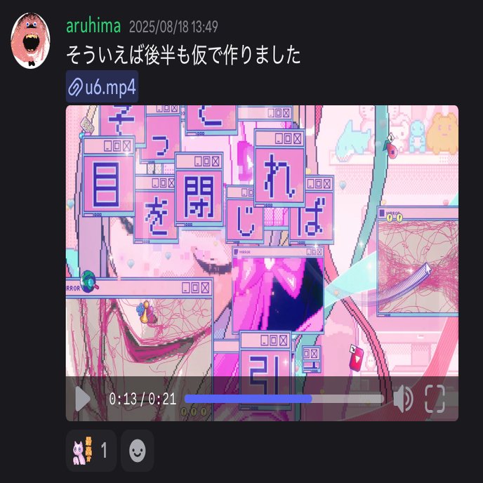 あるひまさんは1番サビの映像に1番最初に着手してくれたのですが、裏音が完成して約10日後にもう大方完成していました。早すぎ