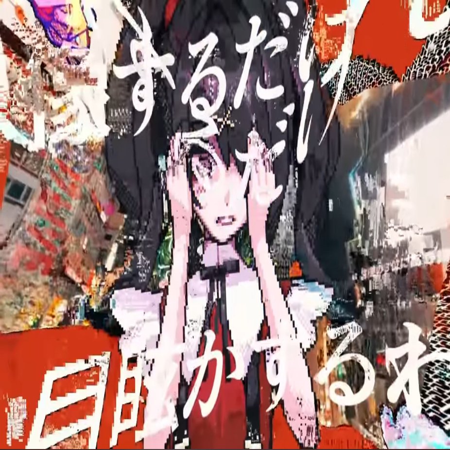 サビ後半に入りますが、こちらの映像は84kbさんに担当していただきました。OD演出から切り替わるため、完全に狂った、壊れた映像を作りたい、と考えていました。映像をあるひまさんは丁寧に映像を製作される方なので、より「狂気」を感じる映像を作るのに適しているのは84kbさんかな、と判断してお願いしました。