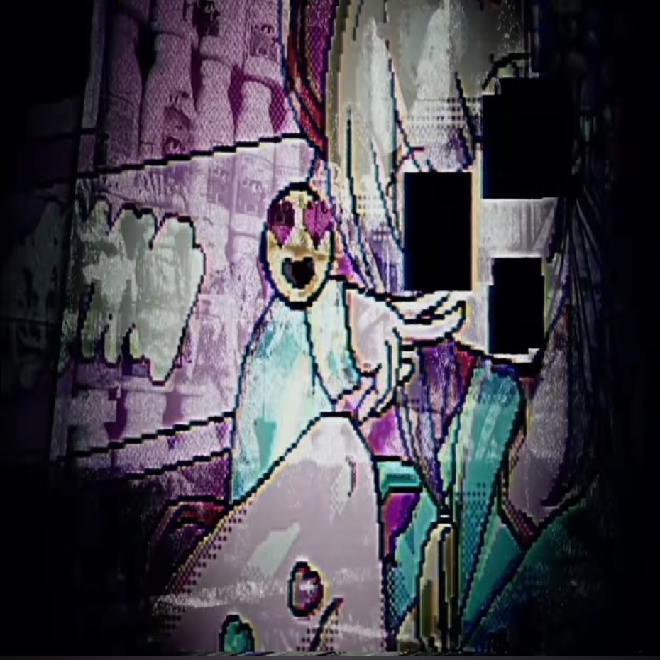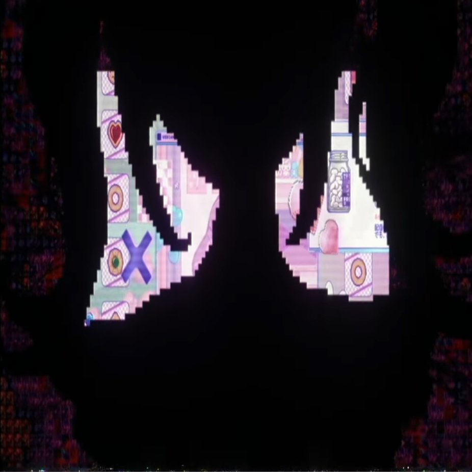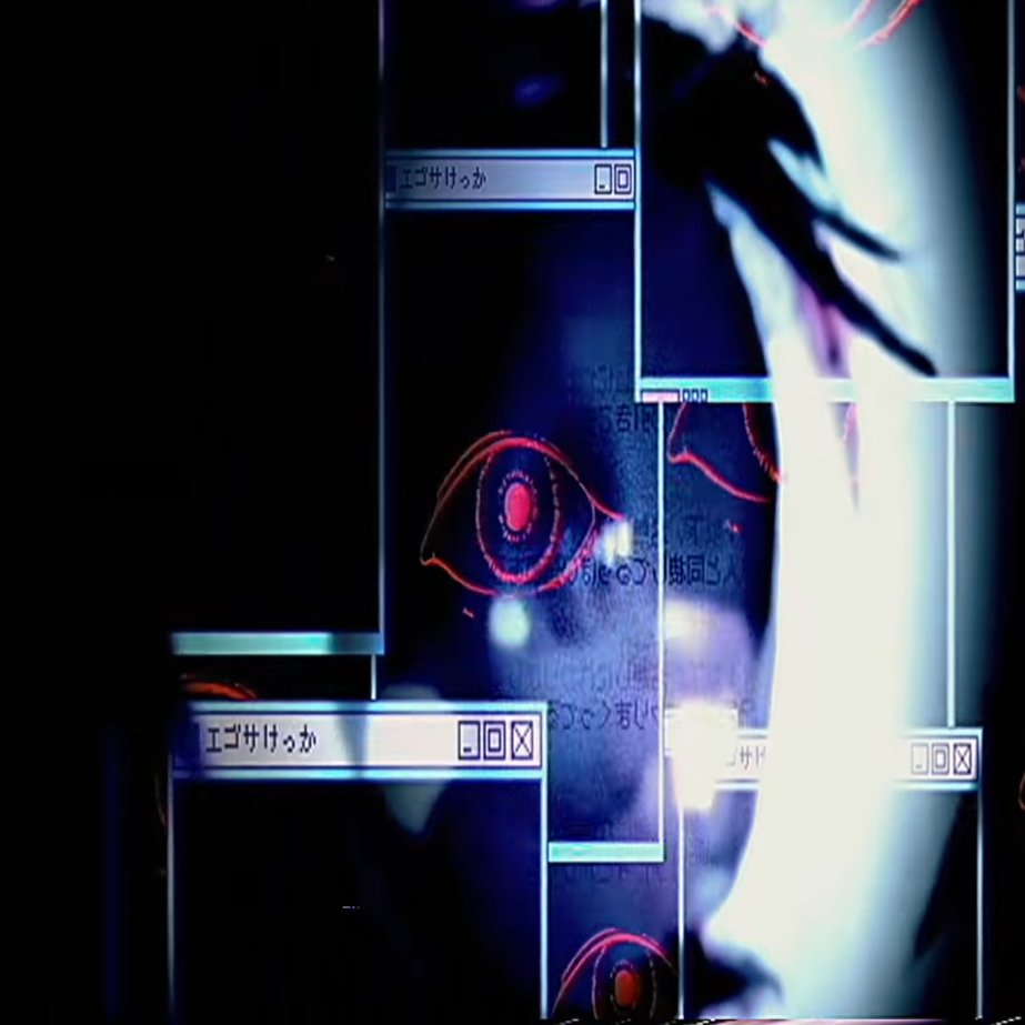 ラスサビの前半は「INTERNET YAMERO」の一部映像を参考にし、映像が頻繁に切り替わる演出を行いました。担当者はわたしです【わたし】、つまり私です。ややこしい不気味な映像を作るように意識しました。イメージ的にはあめちゃんと超てんちゃんの人格が混在し、ぐちゃぐちゃになるという感じ。作成した映像にはある程度参考にしたコンテンツがあるので、いくつか紹介します。